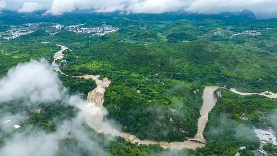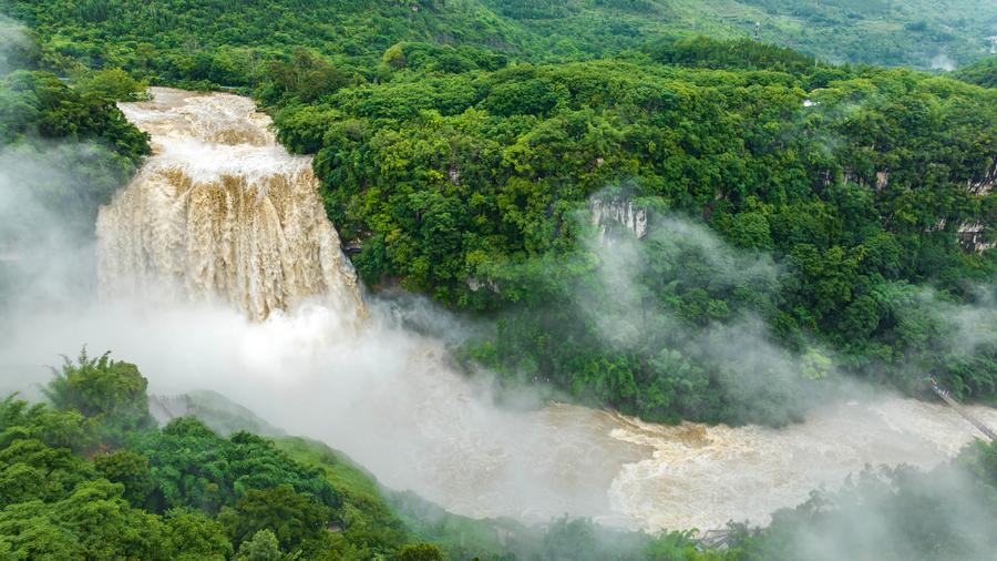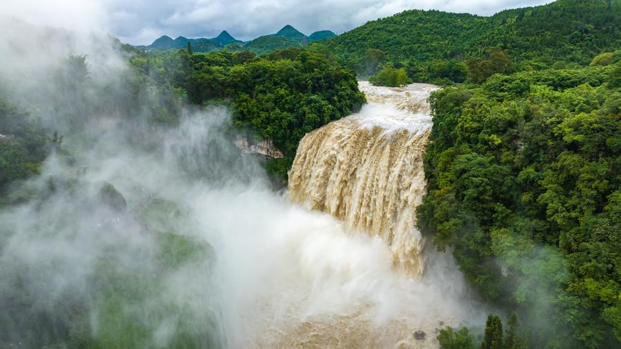 ANSHUN, 27 juin (Xinhua) -- En raison de pluies persistantes, la cascade de Huangguoshu, dans la province chinoise du Guizhou (sud-ouest), a atteint jeudi son débit maximal de la saison des crues cette année, avec un flux de 528 mètres cubes par seconde.