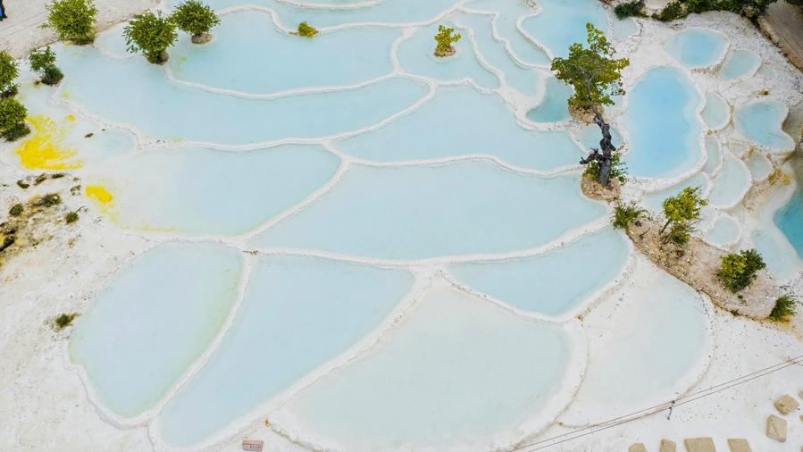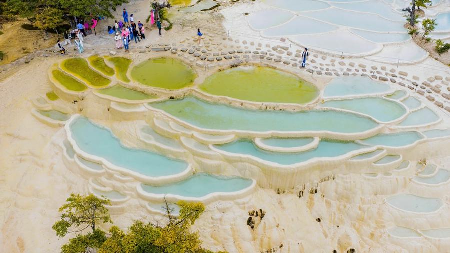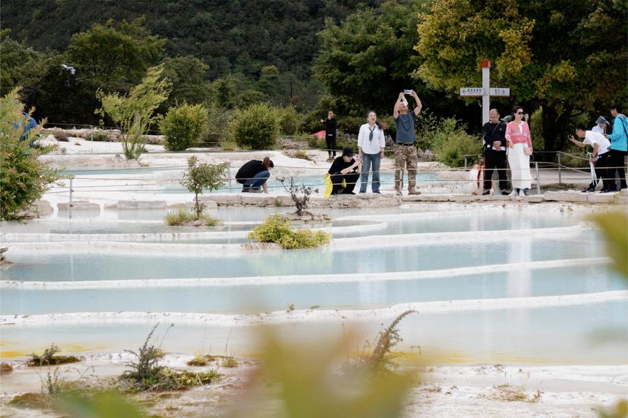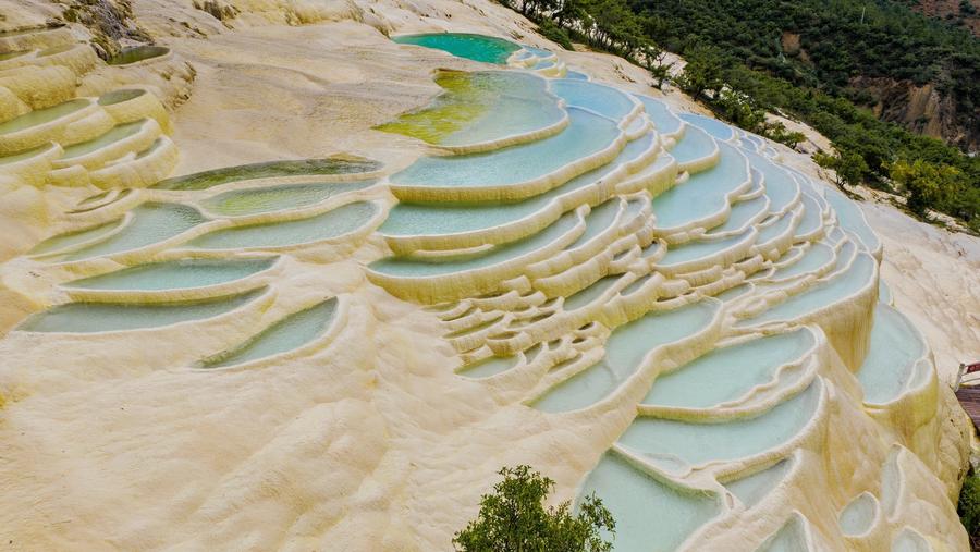 Formée par les sédiments de carbonate de calcium présents dans les eaux de source, Baishuitai est l'une des plus vastes terrasses calcaires de Chine.