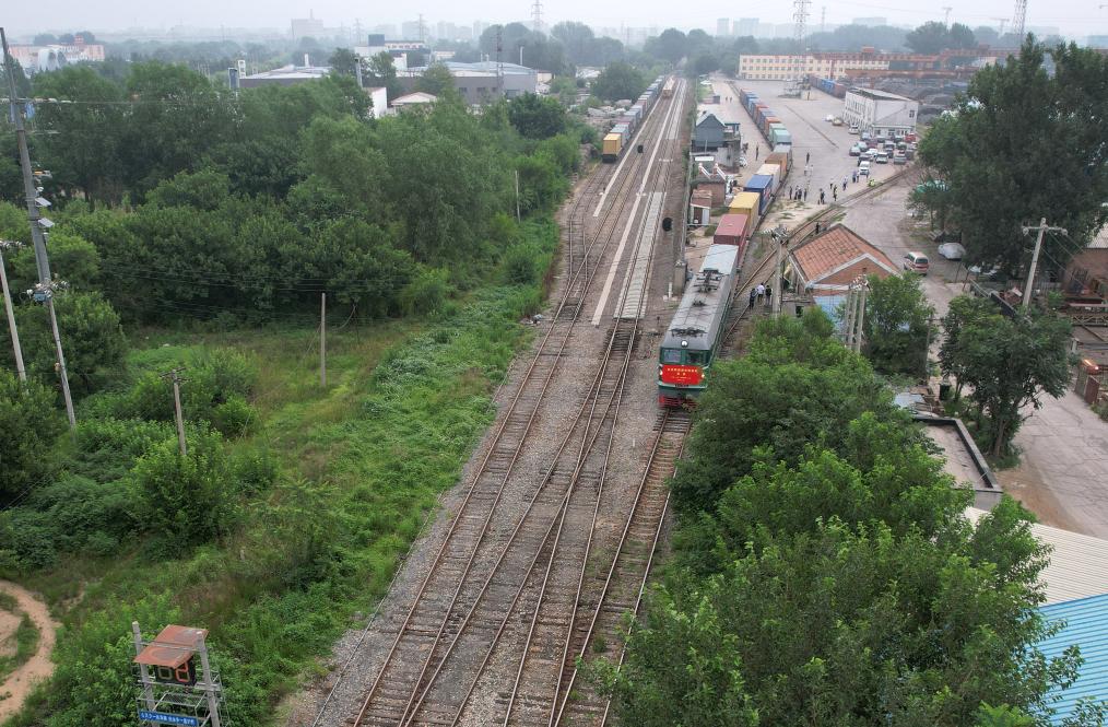 Une nouvelle ligne de fret ferroviaire Chine-Europe reliant Beijing à Bakou, capitale de l'Azerbaïdjan, a été lancée lundi. Empruntant le transport multimodal "rail-mer-rail", les marchandises à bord devraient traverser la mer Caspienne par bateau et arriver à Bakou en 15 jours. (Photo : Zhang Chenlin)