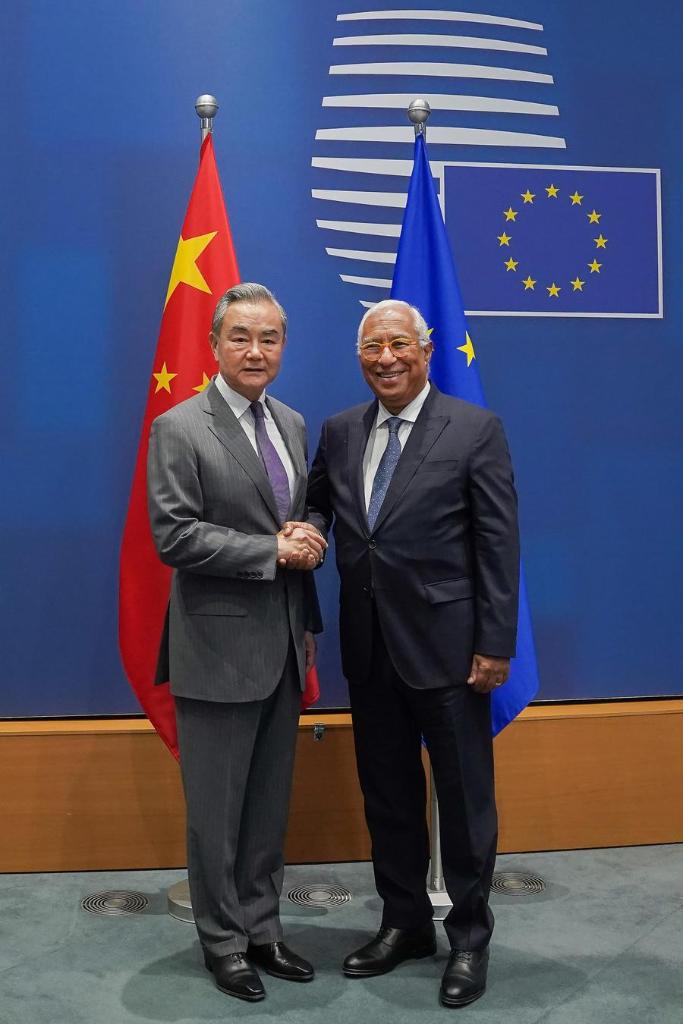 BRUXELLES, 2 juillet (Xinhua) -- Le président du Conseil européen Antonio Costa rencontre le ministre chinois des Affaires étrangères Wang Yi, également membre du Bureau politique du Comité central du Parti communiste chinois, à Bruxelles, en Belgique, le 2 juillet 2025. (Xinhua/Peng Ziyang)