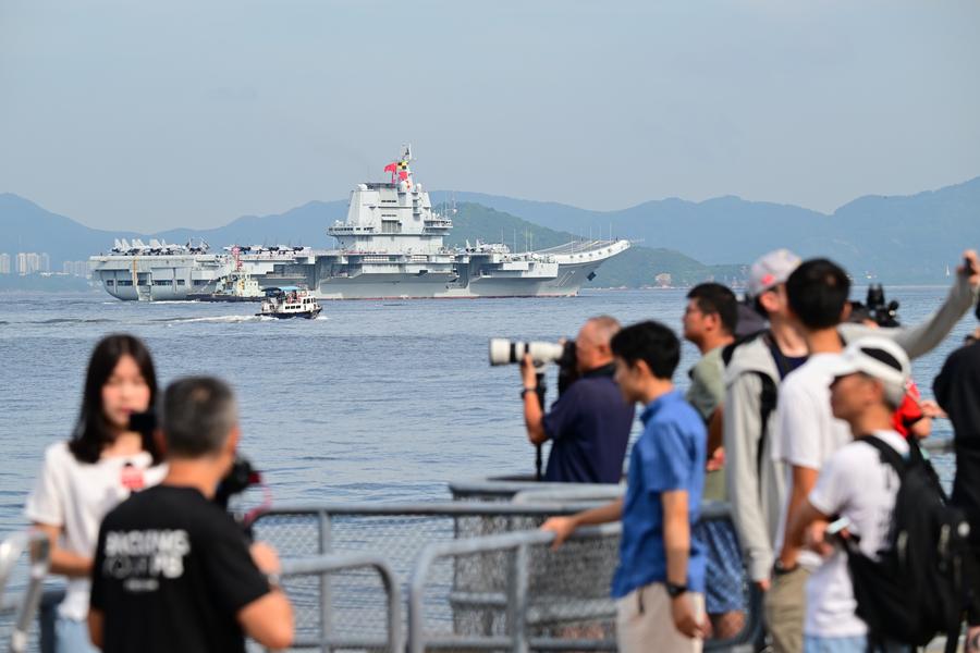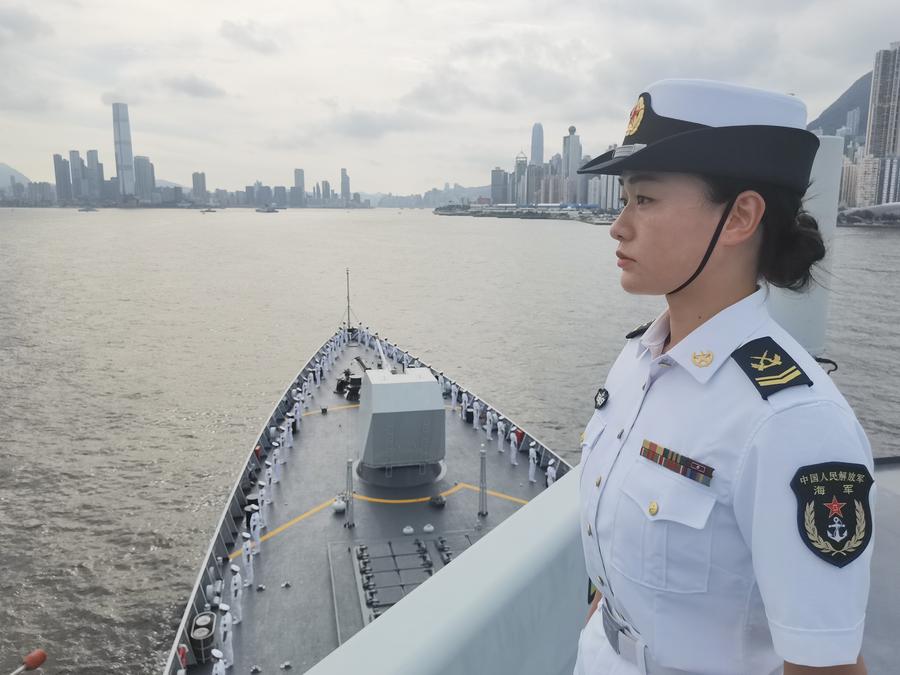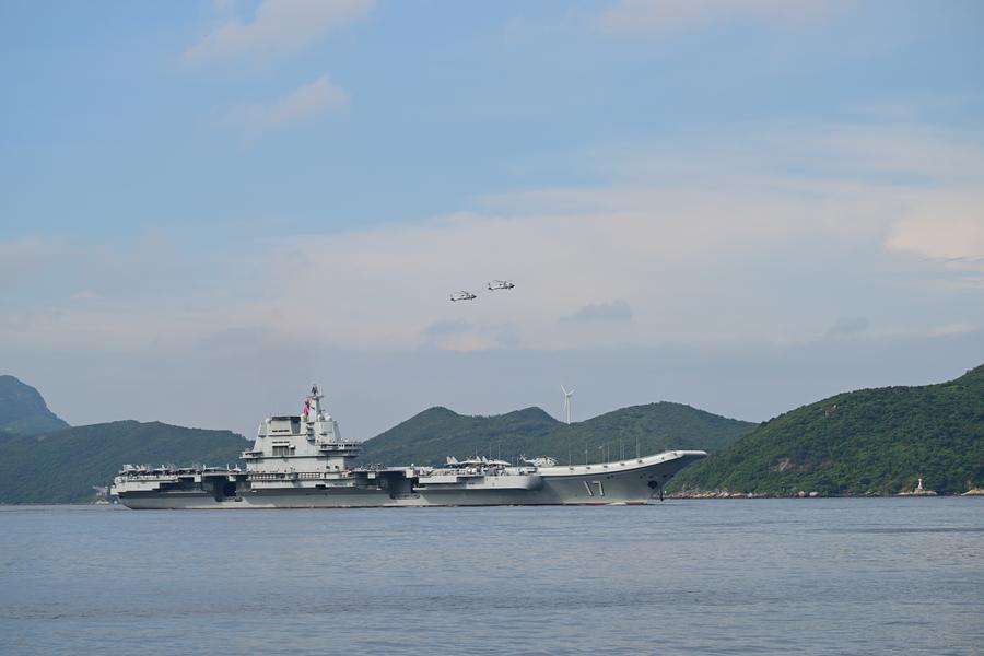 HONG KONG, 3 juillet (Xinhua) -- Une flotte navale de l'Armée populaire de libération de Chine, dirigée par le porte-avions Shandong, est arrivée jeudi matin à Hong Kong.