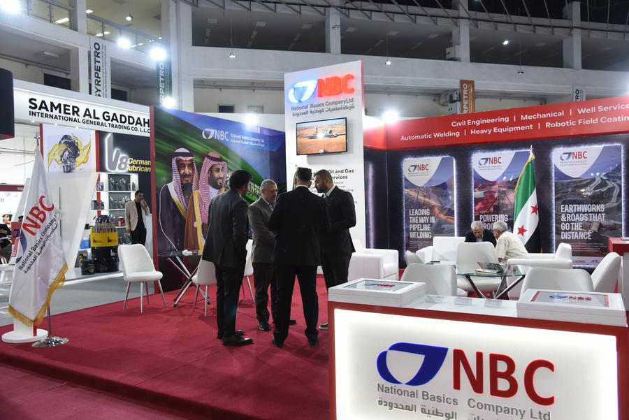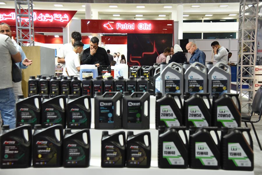 DAMAS, 8 juillet (Xinhua) -- Des produits d'huile moteur sont exposés devant le stand Petrol Ofisilors lors de la 6e Exposition internationale syrienne du pétrole, de l'énergie et des ressources minérales à Damas, en Syrie, le 7 juillet 2025. (Xinhua/Monsef Memari)Des représentants se réunissent au stand de la Saudi National Basics Company Ltd. (NBC) lors de la 6e Exposition internationale syrienne du pétrole, de l'énergie et des ressources minérales à Damas, en Syrie, le 7 juillet 2025. (Xinhua/Monsef Memari)■