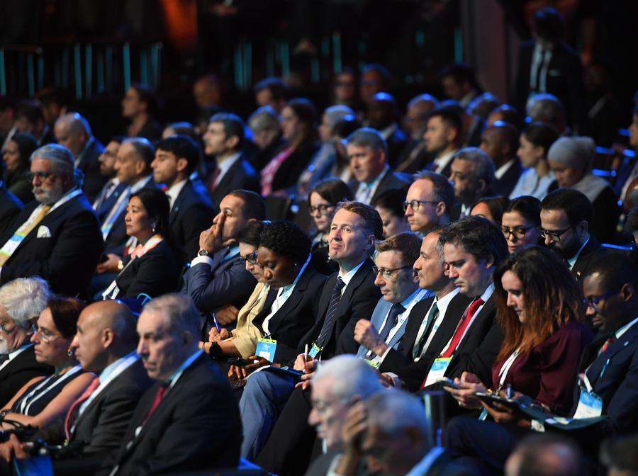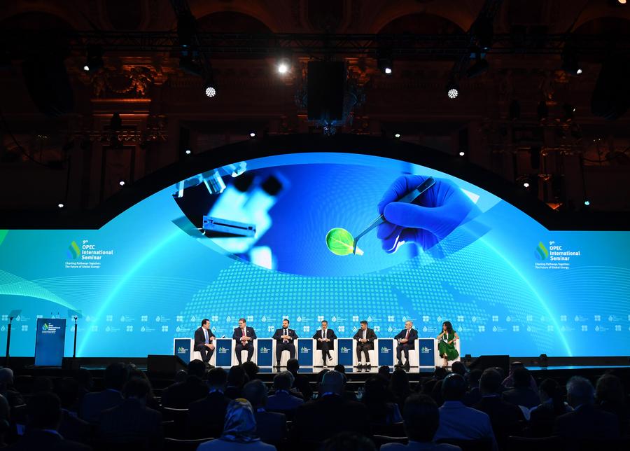 VIENNE, 11 juillet (Xinhua) -- La photo prise le 10 juillet 2025 montre une vue du 9e Séminaire international de l'OPEP à Vienne, en Autriche. En tant que l'une des plateformes les plus influentes pour le dialogue et la coopération dans le secteur de l'énergie, le séminaire de cette année a attiré de nombreux ministres des pays membres de l'OPEP, des représentants des principaux pays producteurs et consommateurs d'énergie, des dirigeants d'organisations internationales, des responsables de sociétés énergétiques et d'institutions financières, ainsi que des experts et des universitaires. (Xinhua/He Canling)