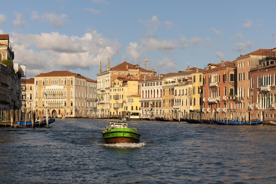 VENISE, 19 juillet (Xinhua) -- Photo prise le 18 juillet 2025 montrant une vue de Venise, en Italie, au lever du soleil. (Xinhua/Li Jing)