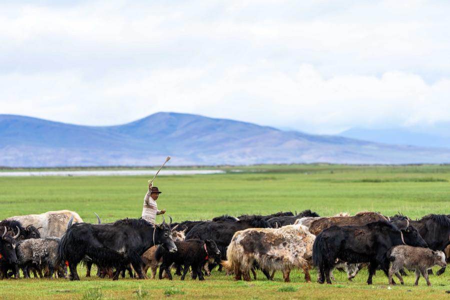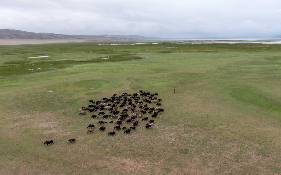 Photo prise le 22 juillet 2025 montrant un troupeau de yaks dans une zone humide près du lac Mapam Yumco dans le district de Burang de la préfecture de Ngari, dans la région autonome du Xizang (sud-ouest de la Chine). (Photo : Tenzing Nima Qadhup)Photo prise le 22 juillet 2025 montrant un troupeau de yaks situé dans une zone humide près du lac Mapam Yumco dans le district de Burang de la préfecture de Ngari, dans la région autonome du Xizang (sud-ouest de la Chine). (Photo : Tenzing Nima Qadhup)Photo aérienne prise par drone le 22 juillet 2025 montrant un troupeau de yaks situé dans une zone humide près du lac Mapam Yumco dans le district de Burang de la préfecture de Ngari, dans la région autonome du Xizang (sud-ouest de la Chine). (Photo : Tenzing Nima Qadhup)■