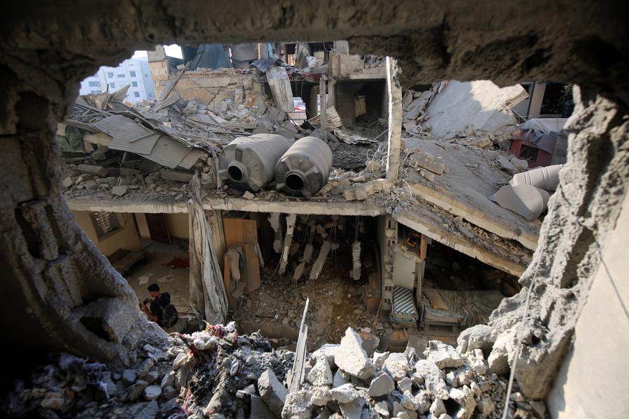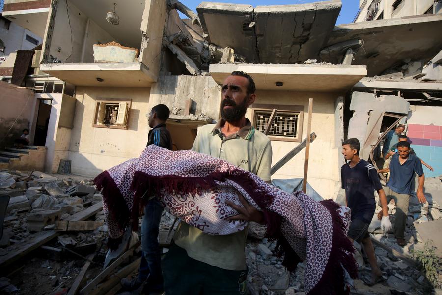 GAZA, 24 juillet (Xinhua) -- Un homme porte le corps d'une victime après une frappe aérienne israélienne dans la zone de Tel al-Hawa, dans la ville de Gaza, le 23 juillet 2025. Depuis qu'Israël a repris ses opérations militaires dans l'enclave le 18 mars, au moins 8.363 Palestiniens ont été tués et 31.004 autres blessés, portant le nombre total de morts depuis octobre 2023 à 59.219, ont déclaré mercredi les autorités sanitaires basées à Gaza. (Xinhua/Rizek Abdeljawad)Cette photo montre des bâtiments endommagés après une frappe aérienne israélienne dans la région de Tel al-Hawa, dans la ville de Gaza, le 23 juillet 2025. Depuis qu'Israël a repris ses opérations militaires dans l'enclave le 18 mars, au moins 8.363 Palestiniens ont été tués et 31.004 autres blessés, portant le bilan total des morts depuis octobre 2023 à 59.219, ont déclaré mercredi les autorités sanitaires basées à Gaza. (Xinhua/Rizek Abdeljawad)■