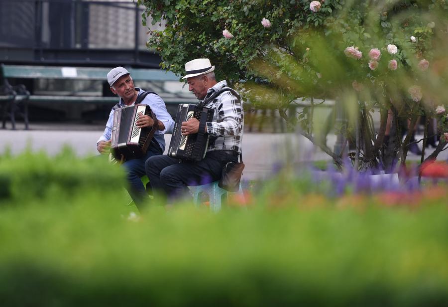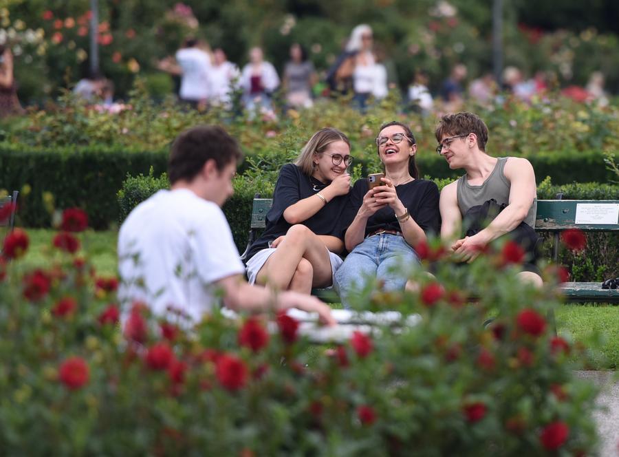 VIENNE, 27 juillet (Xinhua) -- Des gens profitent de leur temps libre au Volksgarten de Vienne, en Autriche, le 26 juillet 2025.(Xinhua/He Canling)Des gens jouent de l'accordéon au Volksgarten de Vienne, en Autriche, le 26 juillet 2025. (Xinhua/He Canling)