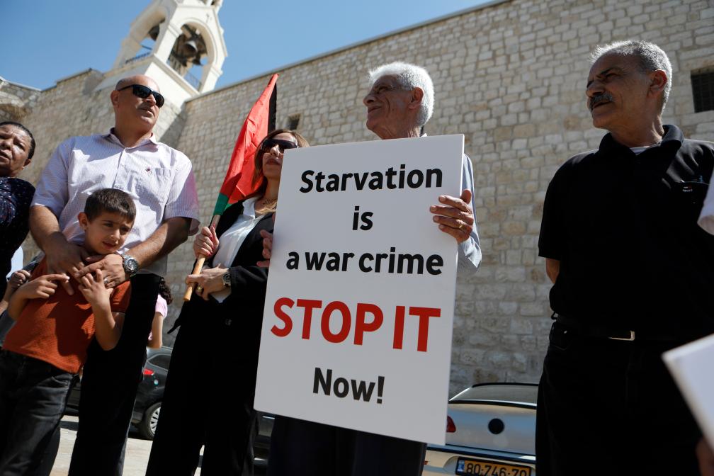 BETHLEEM, 27 juillet 2025 (Xinhua) -- Des Palestiniens participent à une manifestation contre la guerre dans la bande de Gaza et les politiques de famine imposées aux Gazaouis sur la place de la Mangeoire à Bethléem, en Cisjordanie, le 26 juillet 2025. (Xinhua/Mamoun Wazwaz)Des Palestiniens participent à une manifestation contre la guerre dans la bande de Gaza et les politiques de famine imposées aux Gazaouis sur la place de la Mangeoire à Bethléem, en Cisjordanie, le 26 juillet 2025. (Xinhua/Mamoun Wazwaz)Des Palestiniens participent à une manifestation contre la guerre dans la bande de Gaza et les politiques de famine imposées aux Gazaouis sur la place de la Mangeoire à Bethléem, en Cisjordanie, le 26 juillet 2025. (Xinhua/Mamoun Wazwaz)