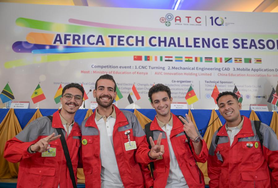 NAIROBI, 29 juillet (Xinhua) -- Des participants égyptiens posent pour une photo de groupe après la cérémonie d'ouverture de la 10e édition de l'ATC, à Nairobi, capitale du Kenya, le 28 juillet 2025. Cet événement, parrainé par la société chinoise AVIC International, a officiellement débuté lundi, réaffirmant les efforts visant à doter les jeunes Africains de compétences techniques pratiques et adaptées au marché. Organisée par le ministère kenyan de l'Education, AVIC Innovation Holding Limited et l'Association chinoise pour l'éducation et les échanges internationaux, cette initiative rassemble 142 équipes composées de 568 participants issus de 12 pays africains. (Xinhua/Yang Guang)