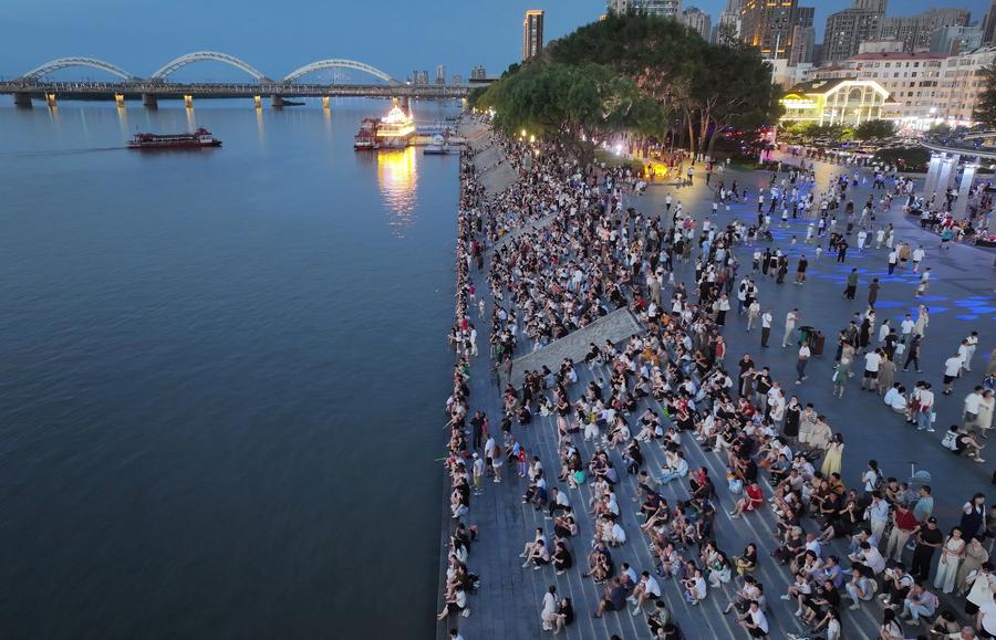 Les gens profitent du coucher de soleil au bord du fleuve Songhua à Harbin, dans la province chinoise du Heilongjiang (nord-est), le 25 juillet 2025.(Photo : Zhang Shu)Des touristes font du jet ski sur le fleuve Songhua à Harbin, dans la province chinoise du Heilongjiang (nord-est), le 6 juillet 2025. (Photo : Yang Wei)Photo prise par un drone de personnes se promenant et prenant des photos au coucher du soleil devant le Grand Théâtre de Harbin, dans la province chinoise du Heilongjiang (nord-est), le 20 juillet 2025.(Photo : Yang Wei)Photo prise par un drone de gens s'amusant au bord du fleuve Songhua à Harbin, dans la province chinoise du Heilongjiang (nord-est), le 6 juillet 2025.(Photo : Yang Wei)Photo prise par un drone de personnes assistant à un concert de chorale folklorique au bord du fleuve Songhua à Harbin, dans la province chinoise du Heilongjiang (nord-est), le 25 juillet 2025. (Photo : Zhang Shu)Photo prise par un drone de personnes assises sur les marches pour profiter de la fraîcheur au bord du fleuve Songhua à Harbin, dans la province chinoise du Heilongjiang (nord-est), le 25 juillet 2025. (Photo : Zhang Shu)■