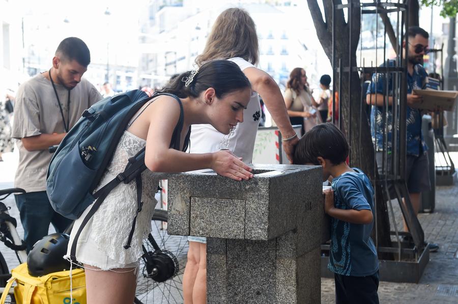 MADRID, 5 août (Xinhua) -- Une femme utilise un parapluie pour se protéger du soleil à Madrid, en Espagne, le 4 août 2025. Des alertes aux coups de chaleur ont été émises dans de nombreux endroits à travers l'Espagne alors que le pays est frappé par une canicule intense. (Xinhua/Gustavo Valiente)