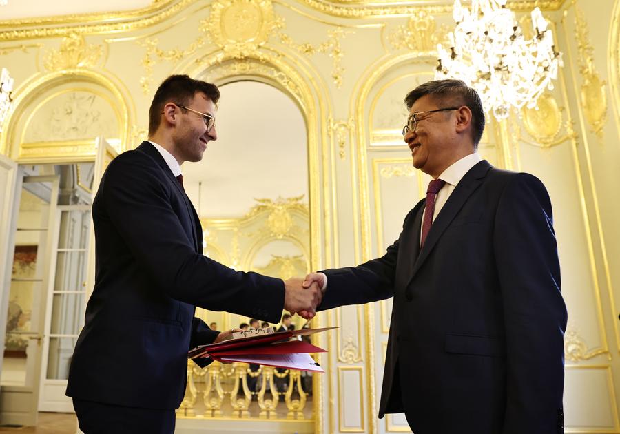 PARIS, 5 août (Xinhua) -- L'ambassade de Chine en France a organisé lundi une cérémonie de remise de photos historiques de la Guerre de résistance contre l'agression japonaise offertes à la Chine par un Français, Marcus Détrez.