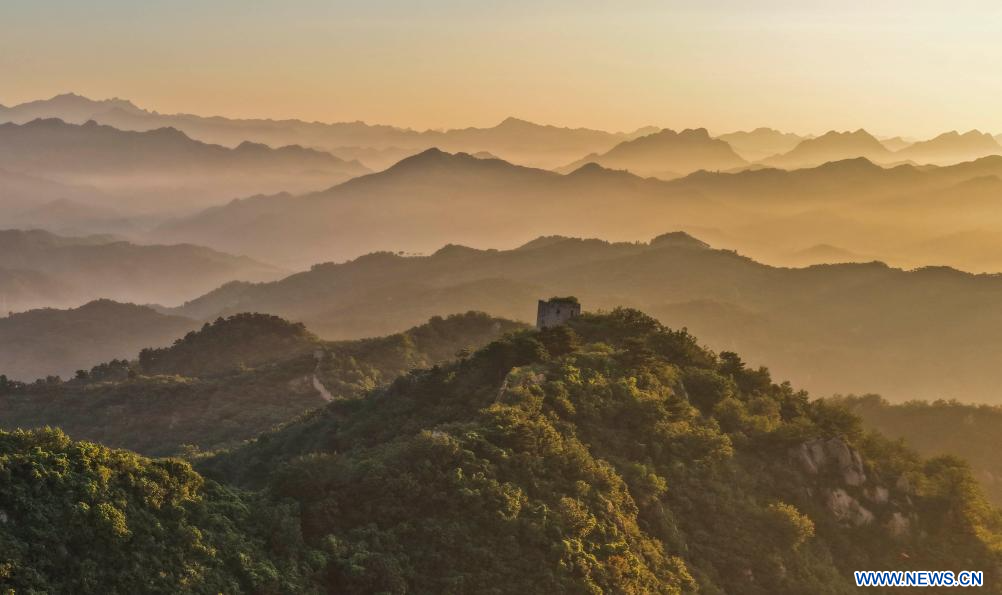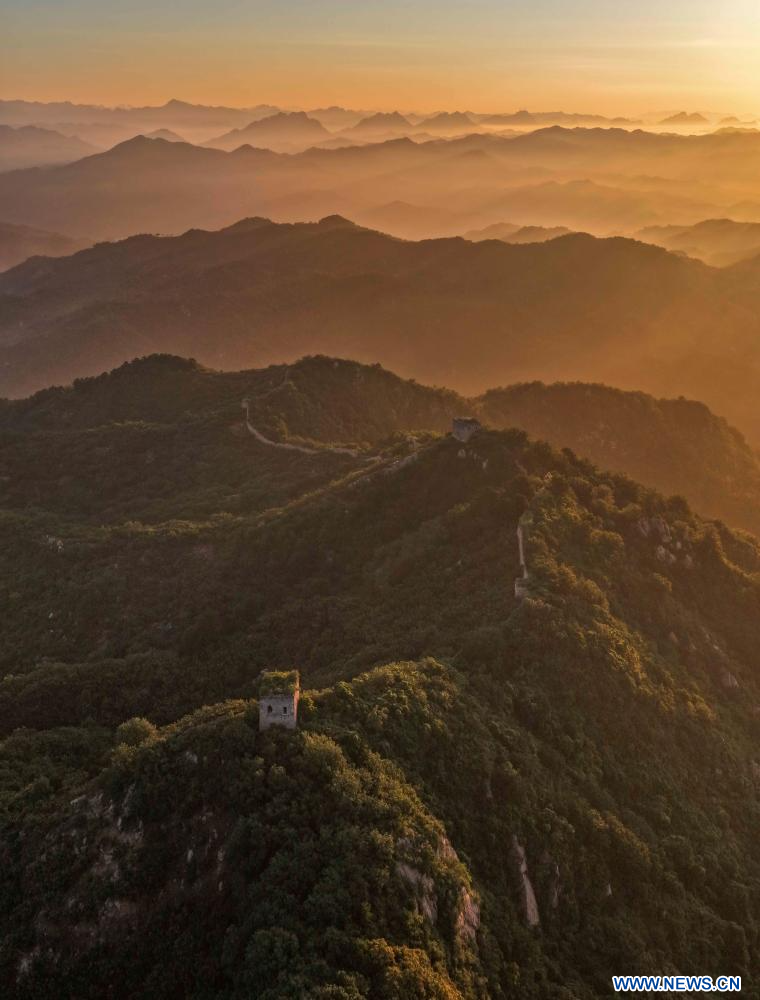 ZUNHUA, 8 août (Xinhua) -- Photo aérienne prise par un drone montrant la Grande Muraille à Zunhua, dans la province chinoise du Hebei (nord), le 7 août 2025. (Photo : Liu Mancang)