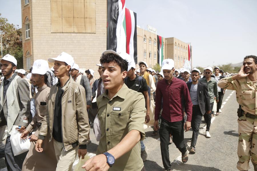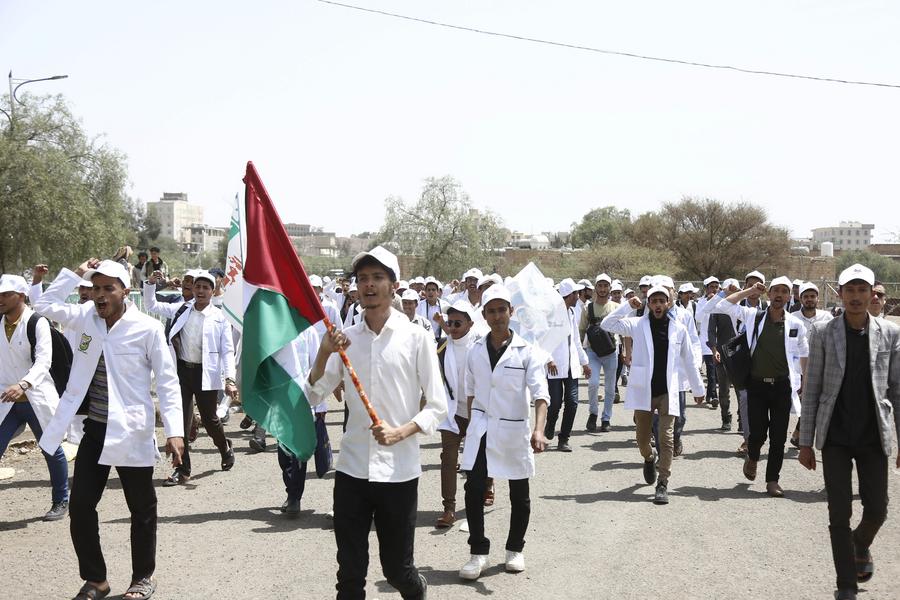 SANAA, 8 août (Xinhua) -- Des étudiants de l'Université de Sanaa participent à une manifestation à Sanaa, au Yémen, le 6 août 2025. Des centaines d'étudiants ont organisé mercredi une manifestation pour dénoncer l'opération militaire et le blocus en cours menés par Israël dans la bande de Gaza. (Xinhua/Mohammed Mohammed)SANAA, 8 août (Xinhua) -- Des étudiants de l'Université de Sanaa participent à une manifestation à Sanaa, au Yémen, le 6 août 2025. Des centaines d'étudiants ont organisé mercredi une manifestation pour dénoncer l'opération militaire et le blocus en cours menés par Israël dans la bande de Gaza. (Xinhua/Mohammed Mohammed)