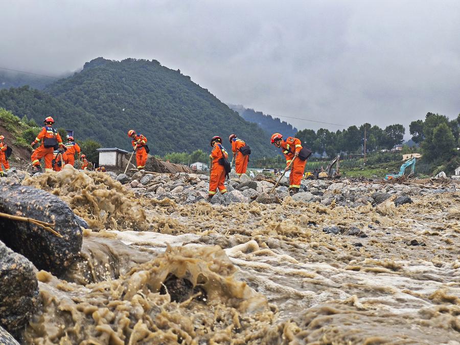 YUZHONG, 9 août (Xinhua) --Les opérations de secours sont en cours après que des pluies torrentielles ont provoqué des torrents de montagne dans le district de Yuzhong, de la province du Gansu, dans le nord-ouest de la Chine.