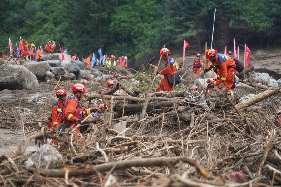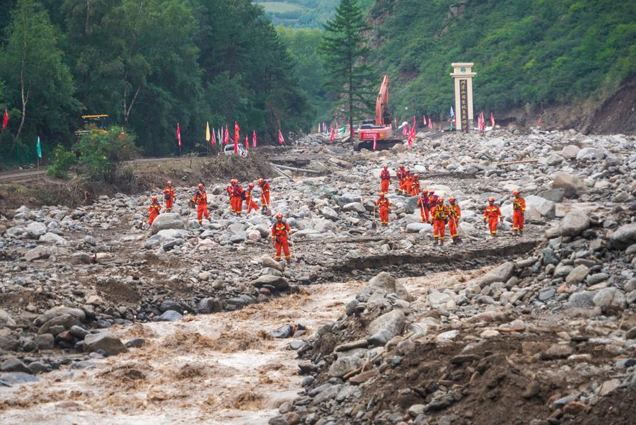 YUZHONG, 10 août (Xinhua) -- Les routes endommagées par les torrents de montagne dans le district de Yuzhong, dans la province chinoise du Gansu (nord-ouest), ont été rouvertes dimanche, et l'électricité a été rétablie après la catastrophe qui a fait treize morts et 30 disparus. Les opérations de recherche et de sauvetage des personnes disparues sont en cours.