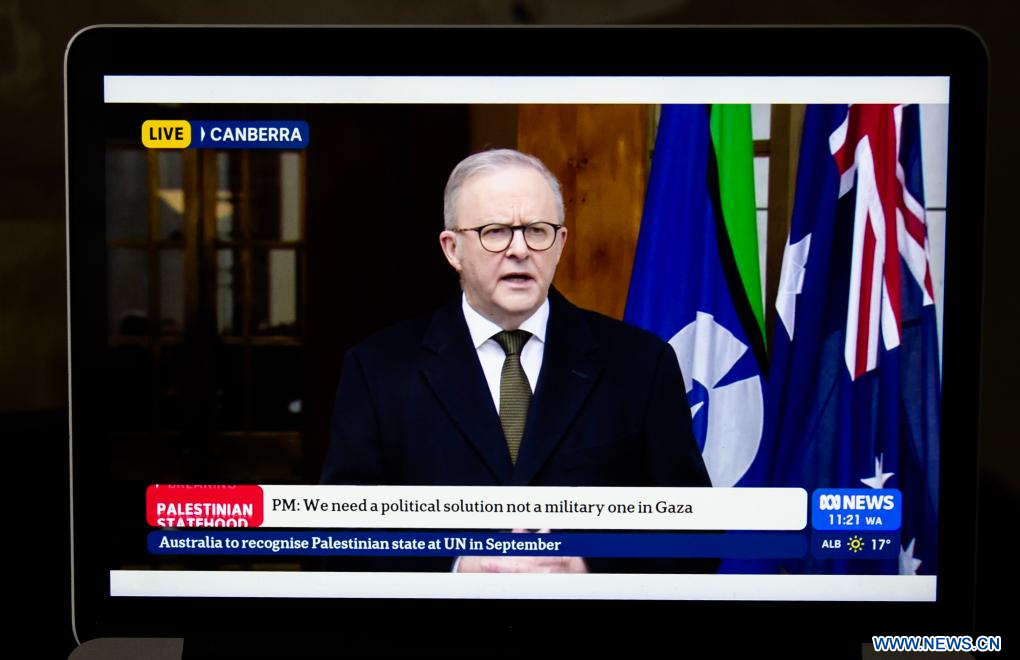 CANBERRA, 11 août (Xinhua) -- L'Australie reconnaîtra officiellement l'Etat de Palestine lors de la 80e session de l'Assemblée générale des Nations Unies en septembre, a annoncé lundi le Premier ministre Anthony Albanese.