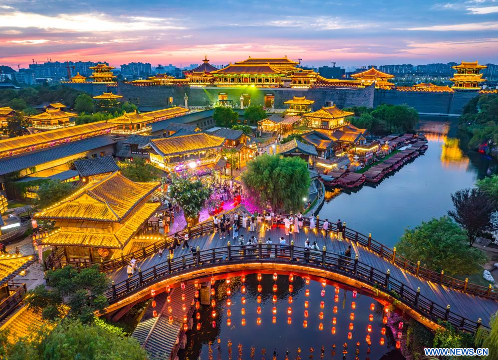 BEIJING, 14 août (Xinhua) -- Photo aérienne prise par un drone montrant le site touristique de Tangcheng dans la ville de Xiangyang, dans la province chinoise du Hubei (centre), le 11 août 2025.
