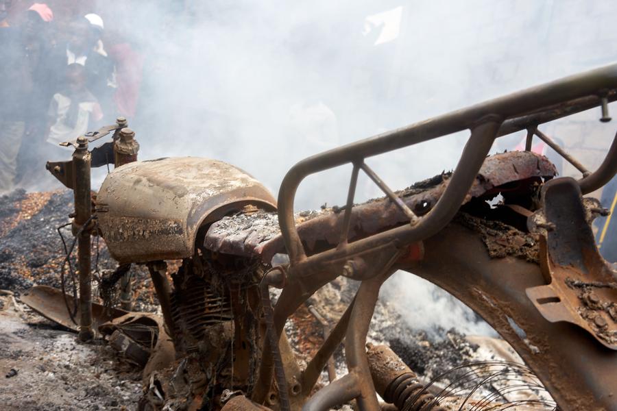 OICHA, 18 août (Xinhua) -- Photo prise le 17 août 2025 montrant des débris dans la ville d'Oicha dans la province du Nord-Kivu, en République démocratique du Congo (RDC). Au moins neuf personnes ont été tuées dans la nuit de samedi à dimanche lors d'une nouvelle attaque imputée aux rebelles des Forces démocratiques alliées (ADF) dans l'est de la RDC, ont rapporté des sources locales dimanche. (Str/Xinhua)