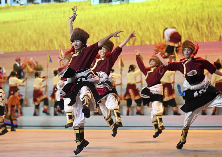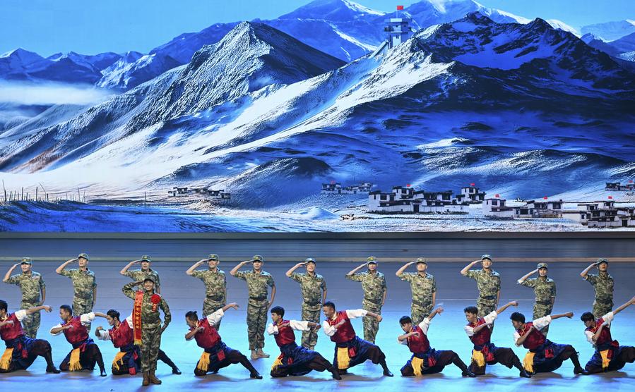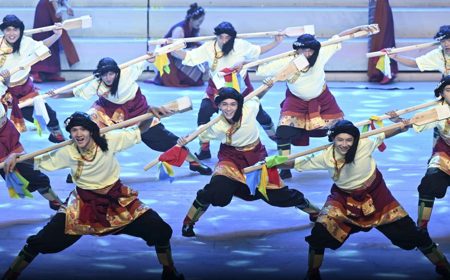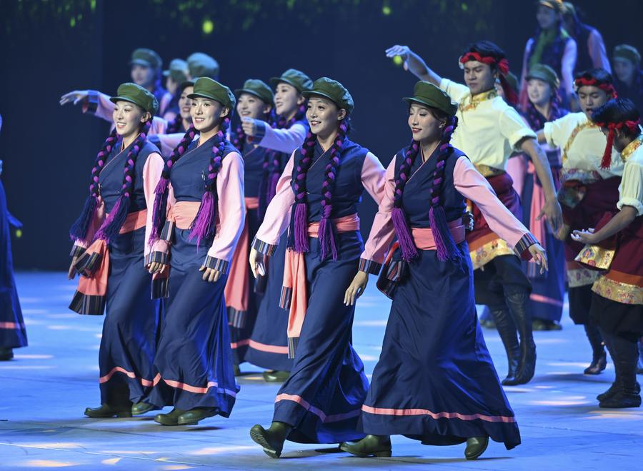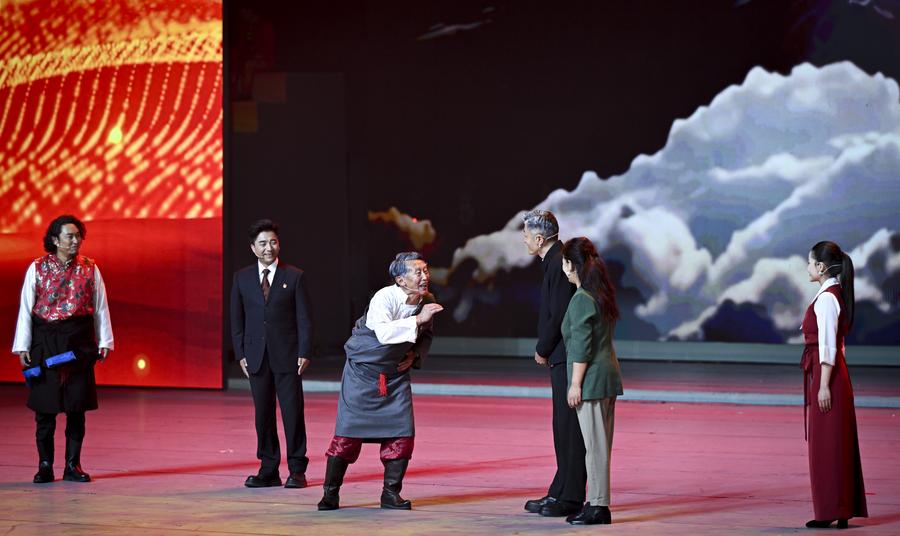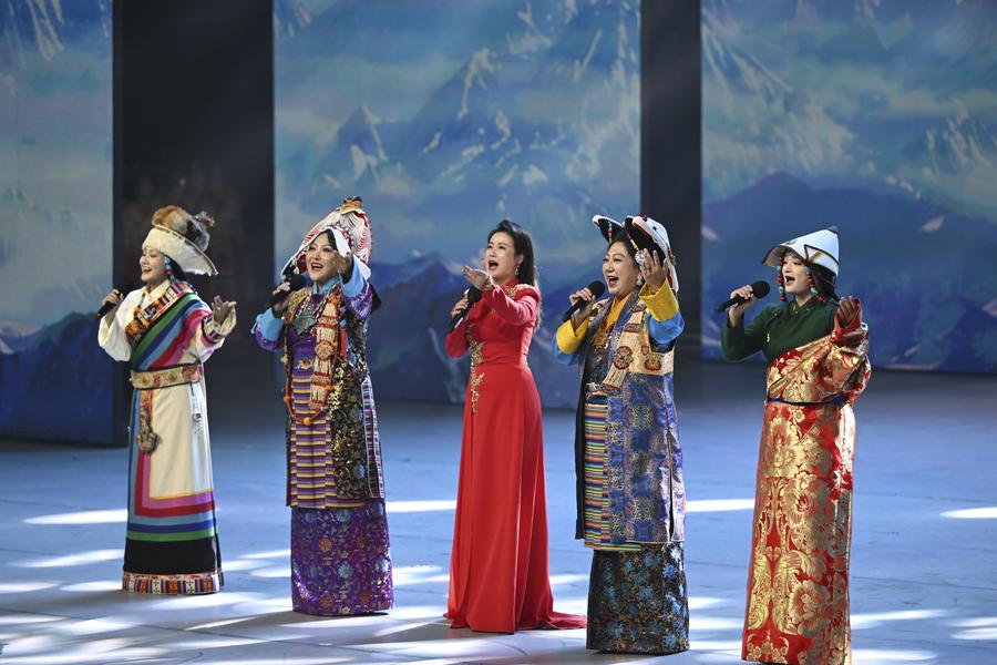Un gala intitulé "Chants joyeux de la région du plateau enneigé" est organisé à l'occasion du 60e anniversaire de la fondation de la région autonome du Xizang, dans la capitale régionale Lhassa, le 20 août 2025. (Photo : Yan Yan)