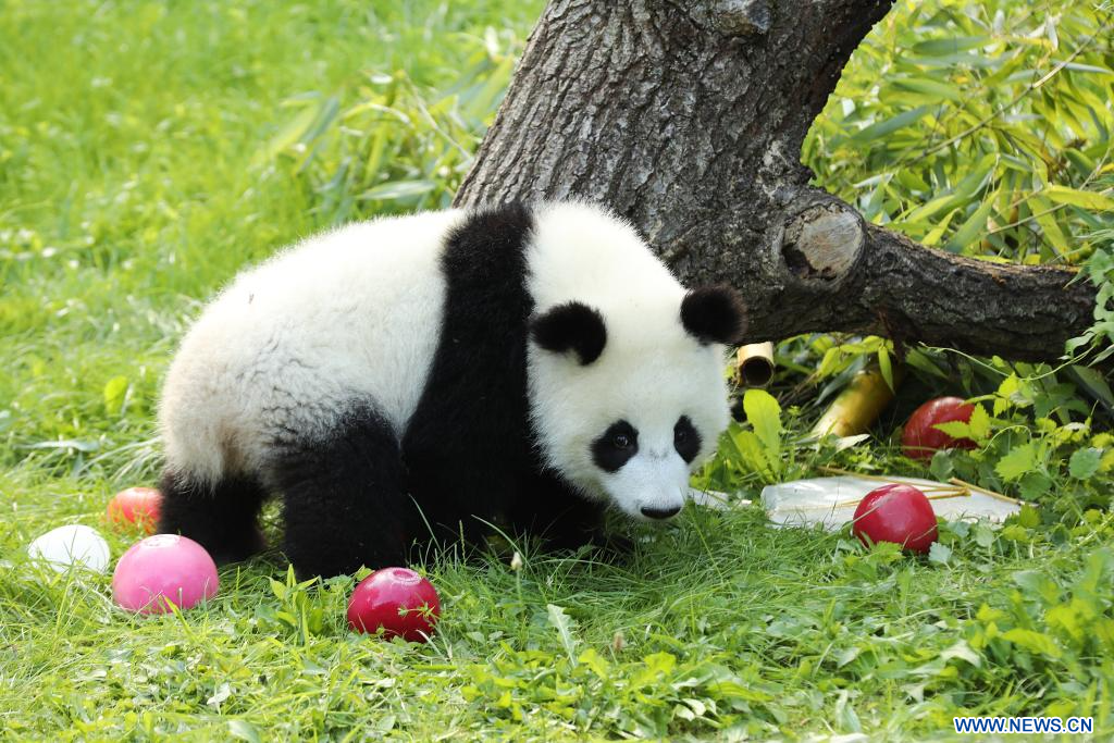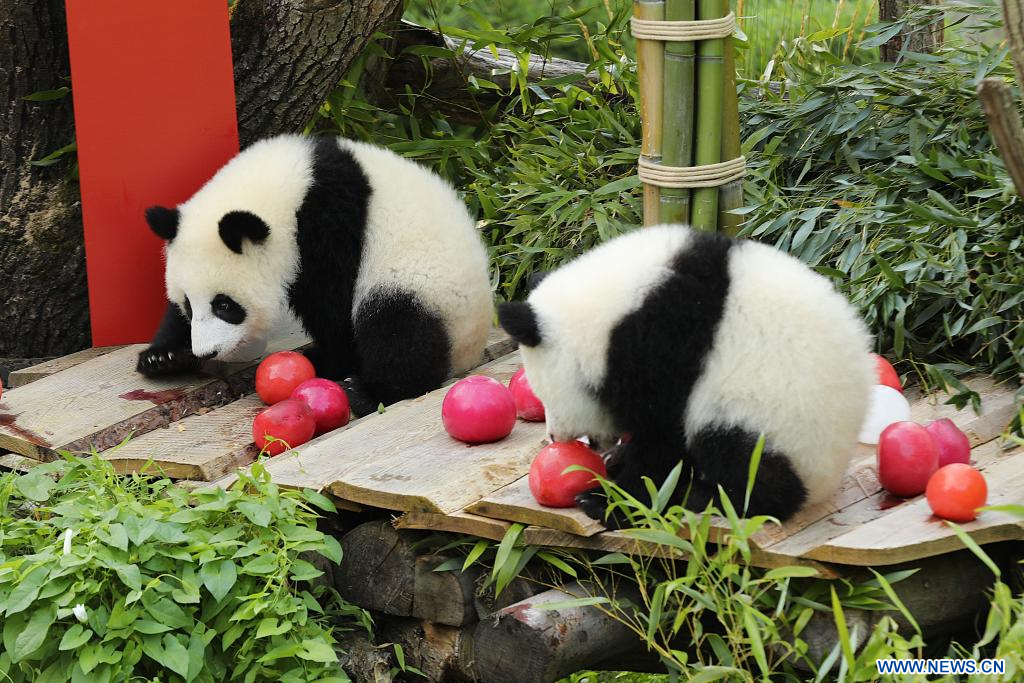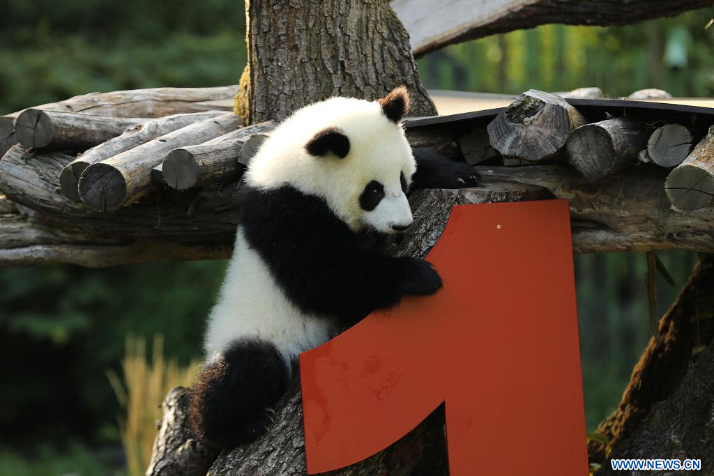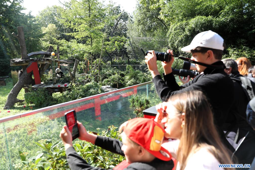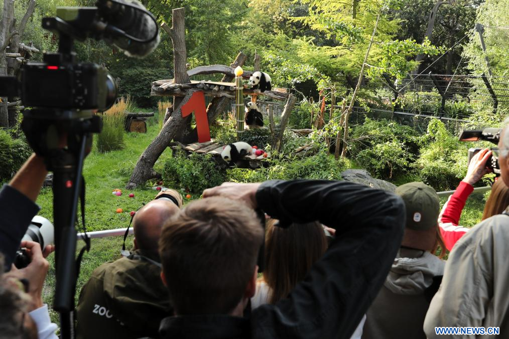 BERLIN, 22 août (Xinhua) -- Le chiffre "1" en bois rouge vif, des glaces à base de jus de betterave et de carotte, et une tige de bambou en guise de bougie d'anniversaire... telle était la scène vendredi dans l'enclos des pandas du zoo de Berlin, où les jumelles Leni et Lotti ont fêté leur tout premier anniversaire dans le plus pur style panda.