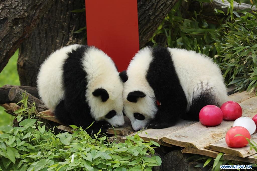 "Les jumelles dépendent encore principalement du lait de leur mère, Meng Meng, âgée de 12 ans, mais elles ont déjà commencé à grignoter du bambou et semblent beaucoup l'apprécier", a déclaré M. Sicks à Xinhua.