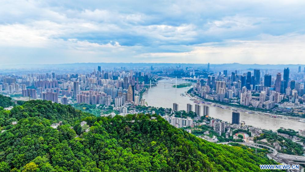 CHONGQING, 24 août (Xinhua) -- Photo prise par un drone montrant une vue de la ville de Chongqing, dans le sud-ouest de la Chine, le 23 août 2025. (Photo : Wang Quanchao)