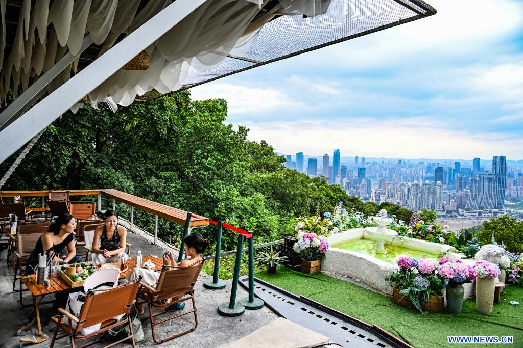 CHONGQING, 24 août (Xinhua) -- Des touristes profitent de leur temps libre sur le site panoramique de Nanshan, dans la ville de Chongqing, dans le sud-ouest de la Chine, le 23 août 2025. (Photo : Wang Quanchao)