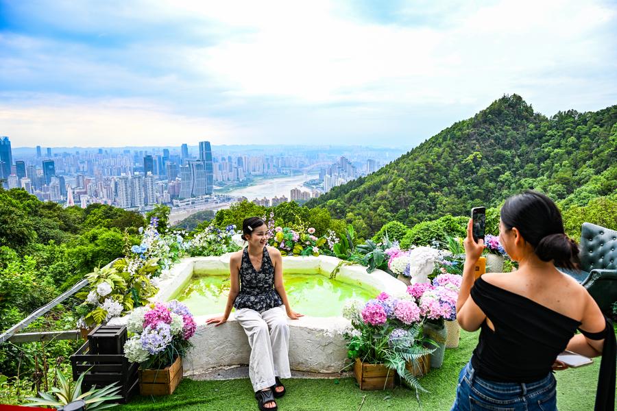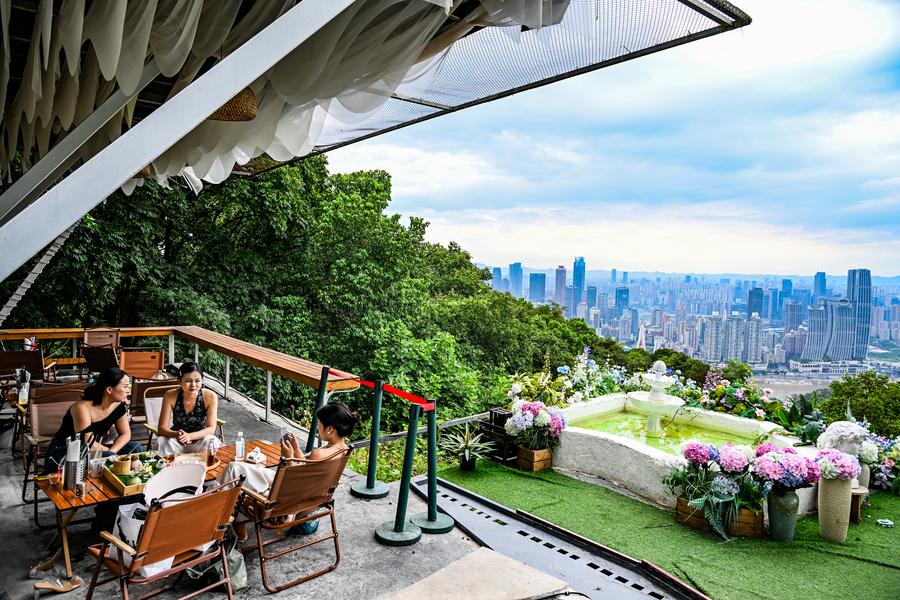 Des touristes profitent de leur temps libre sur le site panoramique de Nanshan, dans la ville de Chongqing, dans le sud-ouest de la Chine, le 23 août 2025. (Photo : Wang Quanchao)