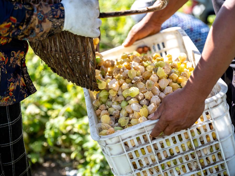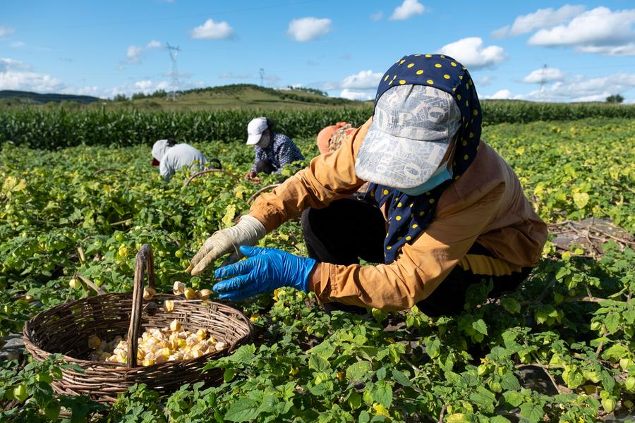 Récolte de physalis dans la bannière autonome de Morin Dawa Daur, à Hulun Buir, dans la région autonome de Mongolie intérieure, dans le nord de la Chine, le 24 août 2025. (Photo : Ma Jinrui)