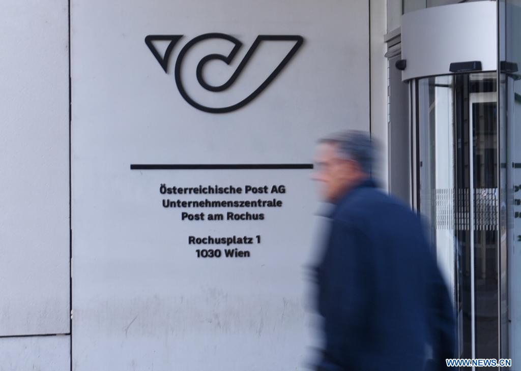 VIENNE, 26 août (Xinhua) -- Photo prise le 24 août 2025 montrant le siège de la Poste autrichienne à Vienne, en Autriche. Plusieurs opérateurs postaux à travers l'Europe suspendent la plupart des envois de colis vers les Etats-Unis, invoquant l'incertitude, la confusion et la hausse des coûts liés à la prochaine réglementation douanière américaine sur les importations de faible valeur. (Xinhua/He Canling)