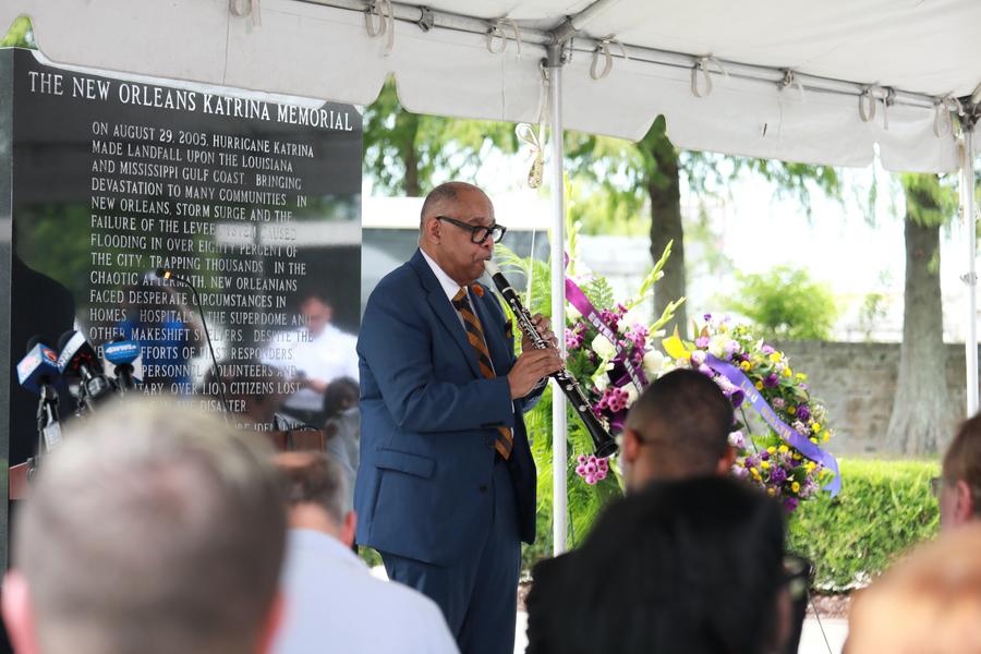 NOUVELLE-ORLEANS, 31 août (Xinhua) -- Un homme se produit en commémoration des victimes de l'ouragan Katrina lors d'une cérémonie de dépôt de gerbes à la Nouvelle-Orléans, en Louisiane, aux Etats-Unis, le 29 août 2025. L'ouragan Katrina, qui a touché terre sur la côte du golfe du Mexique le 29 août 2005, est l'une des tempêtes les plus meurtrières et les plus destructrices de l'histoire des Etats-Unis. La Nouvelle-Orléans, ville située sur le fleuve Mississippi, près du golfe du Mexique, est l'endroit où la tempête a frappé le plus durement. (Xinhua/Lan Wei)NOUVELLE-ORLEANS, 31 août (Xinhua) -- Photo prise le 29 août 2025 montrant la scène d'une cérémonie de dépôt de gerbes à la Nouvelle-Orléans, en Louisiane, aux Etats-Unis. L'ouragan Katrina, qui a touché terre sur la côte du golfe du Mexique le 29 août 2005, est l'une des tempêtes les plus meurtrières et les plus destructrices de l'histoire des Etats-Unis. La Nouvelle-Orléans, située sur le fleuve Mississippi, près du golfe du Mexique, est l'endroit où la tempête a frappé le plus durement. (Xinhua/Lan Wei)