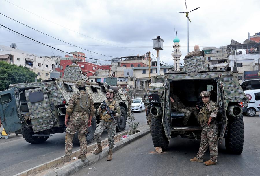 BEYROUTH, 31 août (Xinhua) -- Un homme et sa fille quittent le camp de Burj Barajneh devant l'armée libanaise qui supervise les armes remises à Beyrouth, au Liban, le 29 août 2025. Des véhicules de l'armée libanaise sont entrés vendredi dans le camp de Burj Barajneh pour recevoir un nouveau lot d'armes. (Xinhua/Bilal Jawich)BEYROUTH, 31 août (Xinhua) -- Des soldats libanais supervisent la remise d'armes au camp de Burj Barajneh à Beyrouth, au Liban, le 29 août 2025. Des véhicules de l'armée libanaise sont entrés vendredi dans le camp de Burj Barajneh pour recevoir un nouveau lot d'armes. (Xinhua/Bilal Jawich)