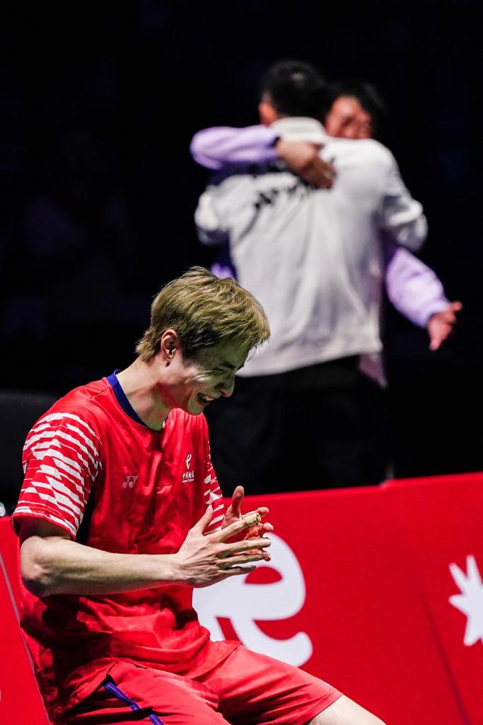 PARIS, 1er septembre (Xinhua) -- Le Chinois Shi Yuqi remporte la victoire après la finale du simple messieurs contre le Thaïlandais Kunlavut Vitidsarn lors des Championnats du monde de badminton 2025 à Paris, en France, le 31 août 2025. Au terme d'une finale éprouvante en trois manches, M. Shi a battu le champion en titre thaïlandais 19-21, 21-10, 21-18. (Xinhua/Peng Ziyang)