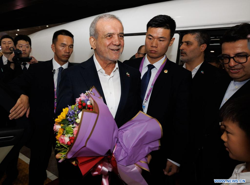 BEIJING, 2 septembre (Xinhua) -- Le président iranien, Masoud Pezeshkian, arrive à Beijing, capitale chinoise, le 2 septembre 2025, pour les commémorations marquant le 80e anniversaire de la victoire de la Guerre de résistance du peuple chinois contre l'agression japonaise et de la Guerre mondiale antifasciste. (Photo : Jin Liwang)