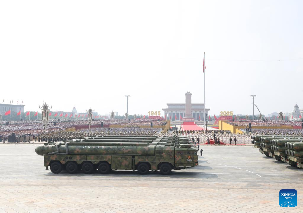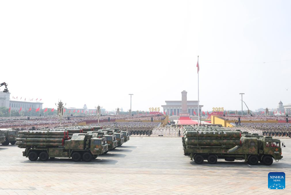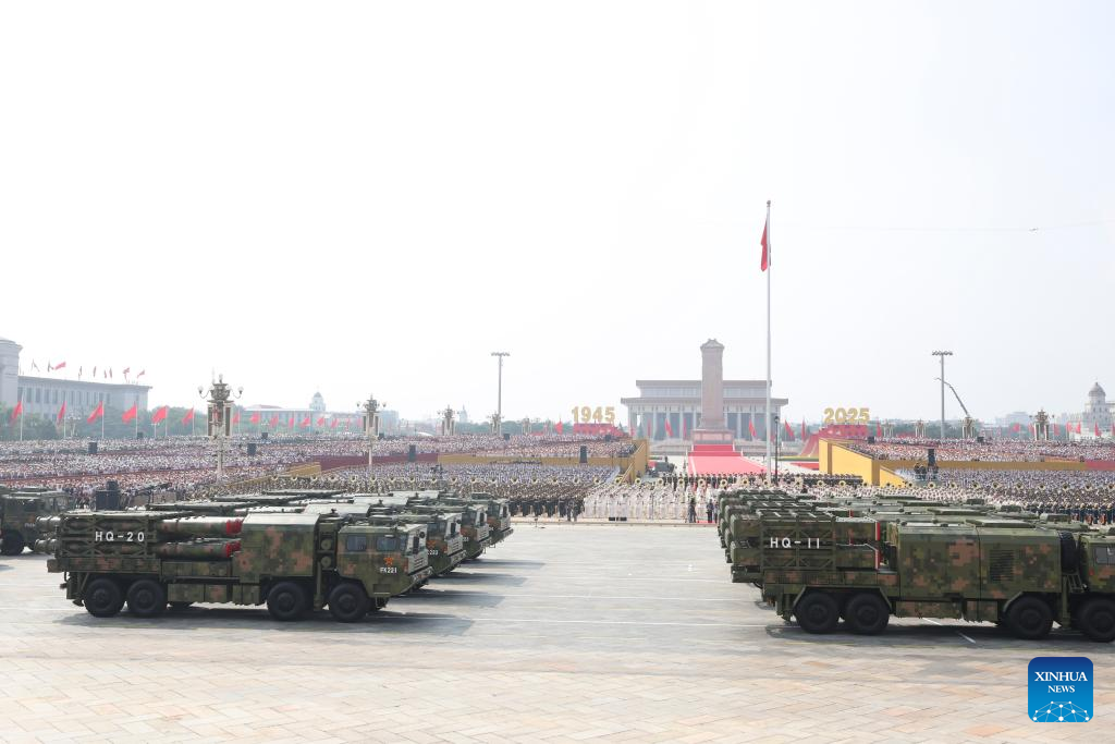 BEIJING, 3 septembre (Xinhua) -- Une série d'équipements de défense aérienne chinois, dont les missiles HongQi-20, HongQi-19 et HongQi-29, ont fait leur apparition mercredi lors du défilé militaire organisé à l'occasion de la Journée de la Victoire en Chine.