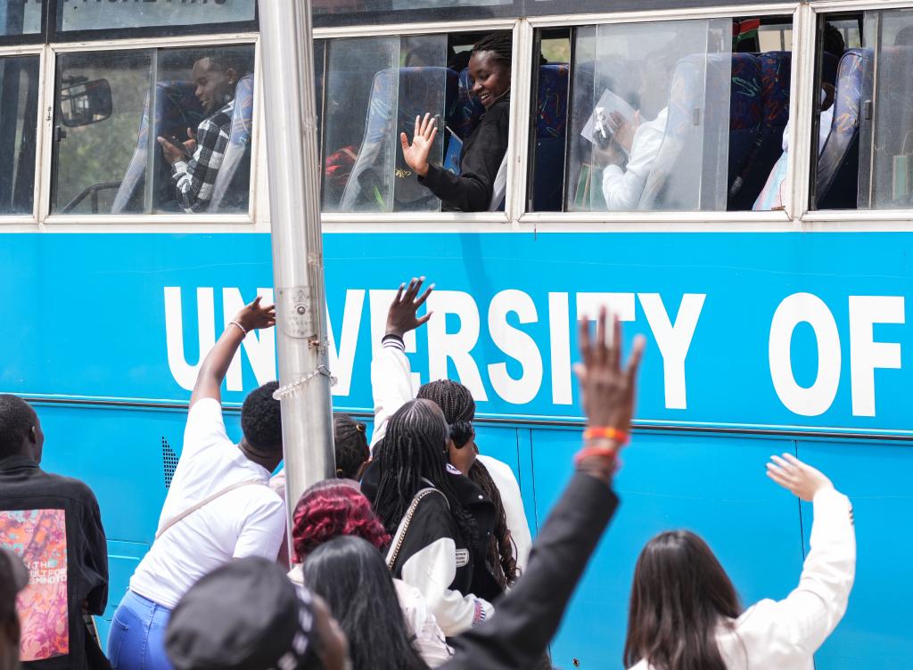 NAIROBI, 5 septembre (Xinhua) -- Des personnes font leurs adieux à des boursiers en route vers l'Université normale de Tianjin en Chine pour y suivre des études avancées de mandarin, à Nairobi, au Kenya, le 5 septembre 2025. Une cérémonie de départ a été organisée vendredi pour ces boursiers de l'Institut Confucius à l'Université de Nairobi. Parmi eux, vingt étudiants vont suivre un programme d'études de deux ans. (Xinhua/Li Yahui)