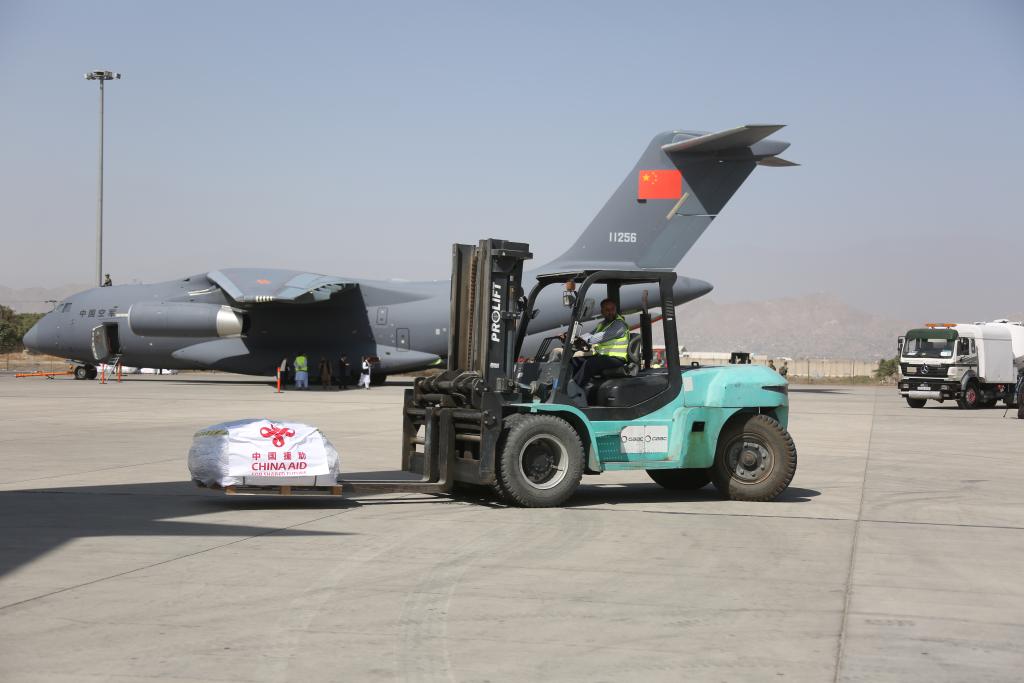 Transportée à bord de deux avions Y-20 de l'Armée populaire de libération chinoise, la cargaison comprenait des tentes, des couvertures et d'autres articles de première nécessité pour les zones touchées par le séisme.