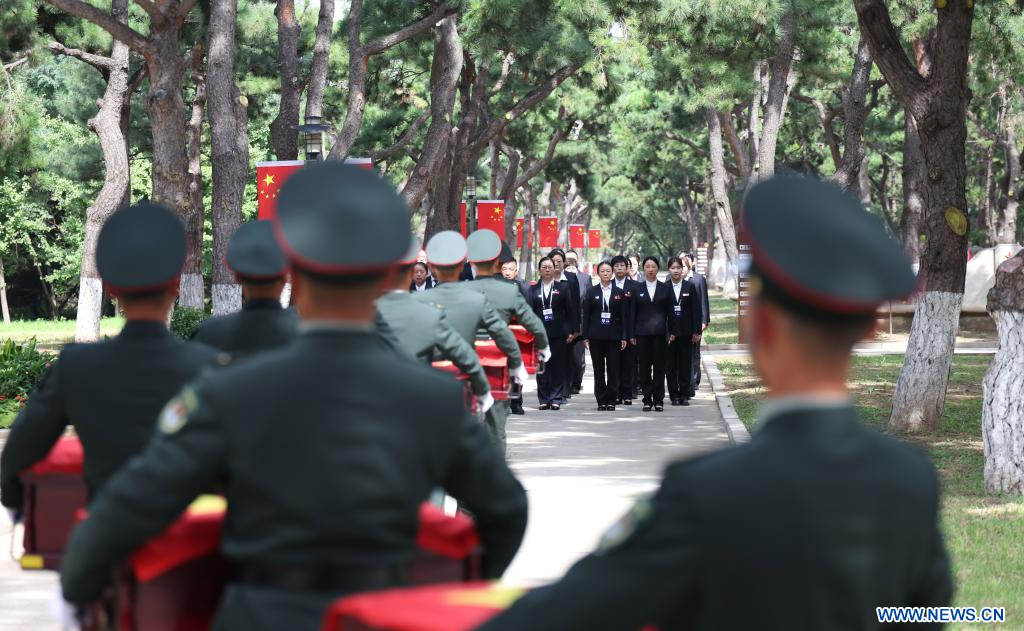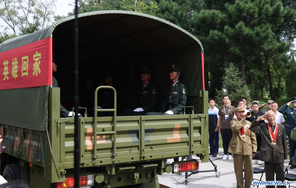 SHENYANG, 12 septembre (Xinhua) -- Les dépouilles de 30 martyrs supplémentaires des Volontaires du peuple chinois (VPC) tombés au combat lors de la Guerre de résistance à l'agression américaine et d'aide à la Corée (1950-1953) ont été rapatriées vendredi depuis la République de Corée.