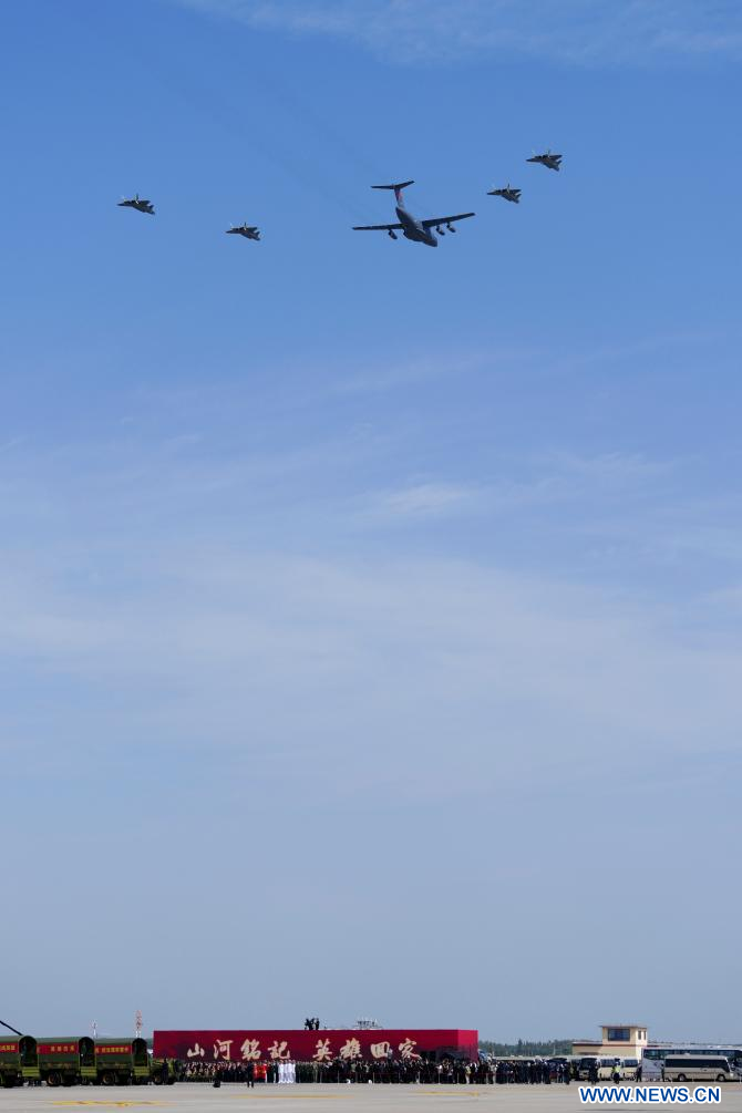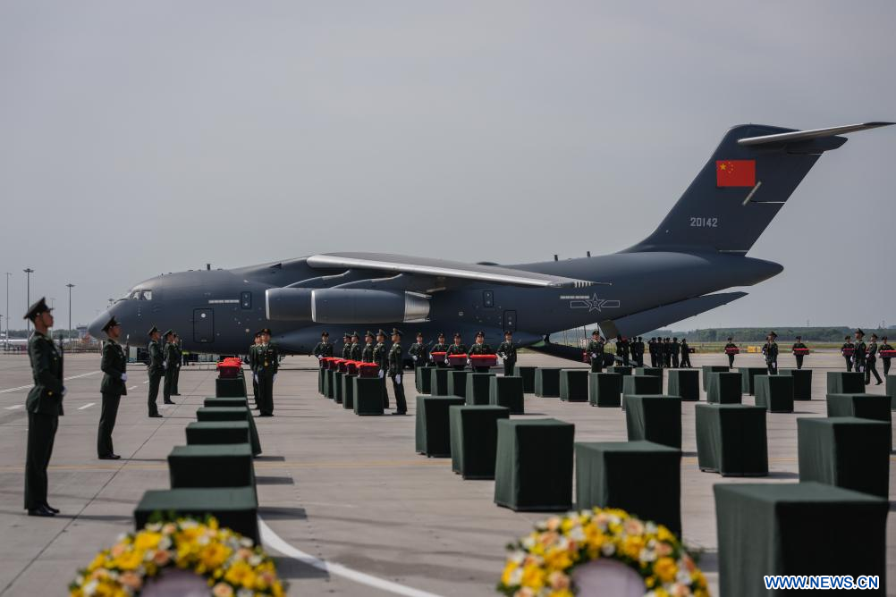 Un avion de transport Y-20 des Forces aériennes de l'Armée populaire de libération, transportant les dépouilles des martyrs ainsi que 267 objets de reliques, a atterri à l'Aéroport international Taoxian à Shenyang, capitale de la province chinoise du Liaoning (nord-est).