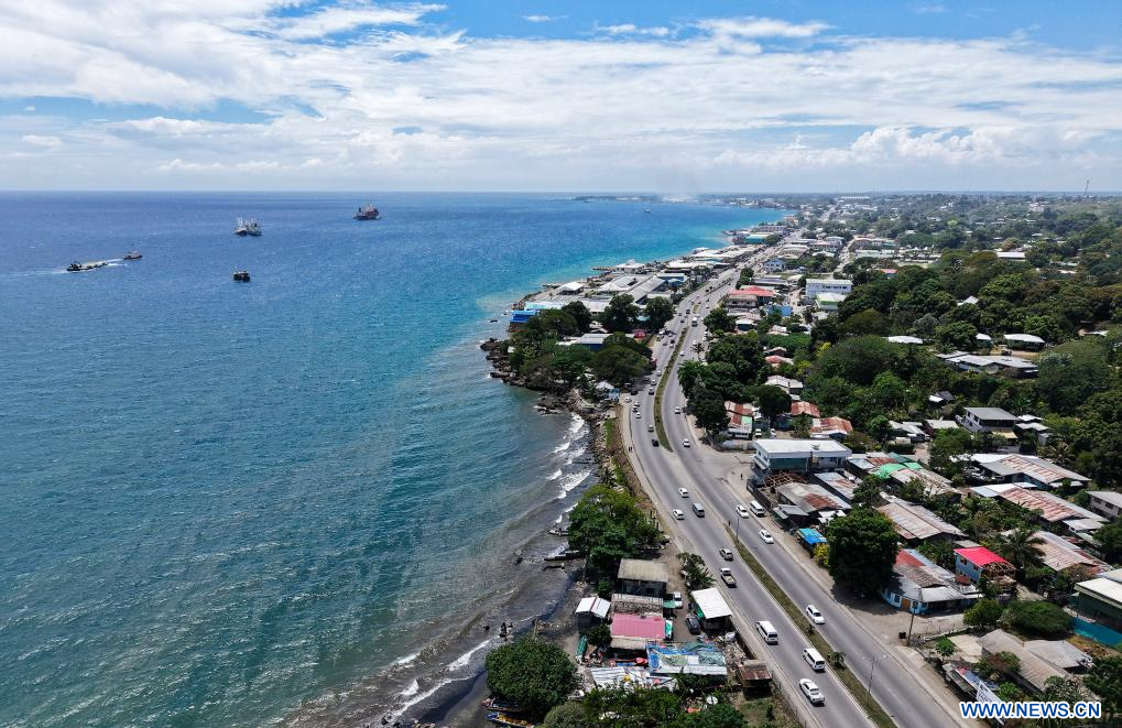 HONIARA, 12 septembre (Xinhua) -- Photo aérienne prise par drone le 9 septembre 2025 montre une vue de Honiara, dans les Îles Salomon. (Xinhua/Ma Ping)