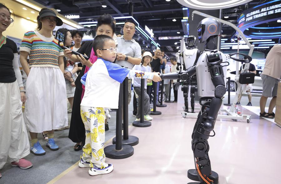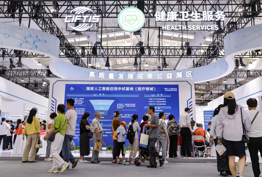 Vue extérieure du site de la CIFTIS 2025 au parc Shougang à Beijing,le 14 septembre 2025. (Photo : Xu Qin)Un enfant interagit avec un robot humanoïde pendant la CIFTIS 2025, qui s'est tenue au parc Shougang à Beijing, le 14 septembre 2025.(Photo : Zou Duowei)Vue extérieure du site de la CIFTIS 2025 au parc Shougang à Beijing, le 14 septembre 2025.(Photo : Xu Qin)Des visiteurs parcourent la zone d'exposition consacrée aux services de santé lors de la CIFTIS 2025, qui s'est tenue au parc Shougang à Beijing, le 14 septembre 2025.(Photo : Xu Qin)■