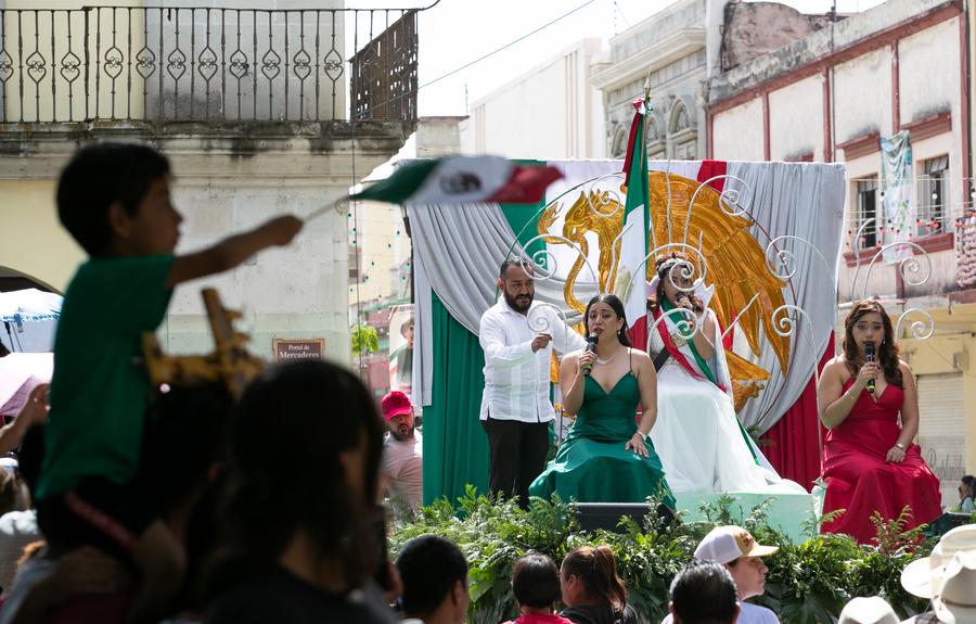 OAXACA (MEXIQUE), 16 septembre (Xinhua) -- Des chanteurs vêtus des couleurs du drapeau national se produisent lors de la célébration du Jour de l'Indépendance à Oaxaca, dans l'Etat d'Oaxaca, au Mexique, le 16 septembre 2025. (Xinhua/Li Mengxin)