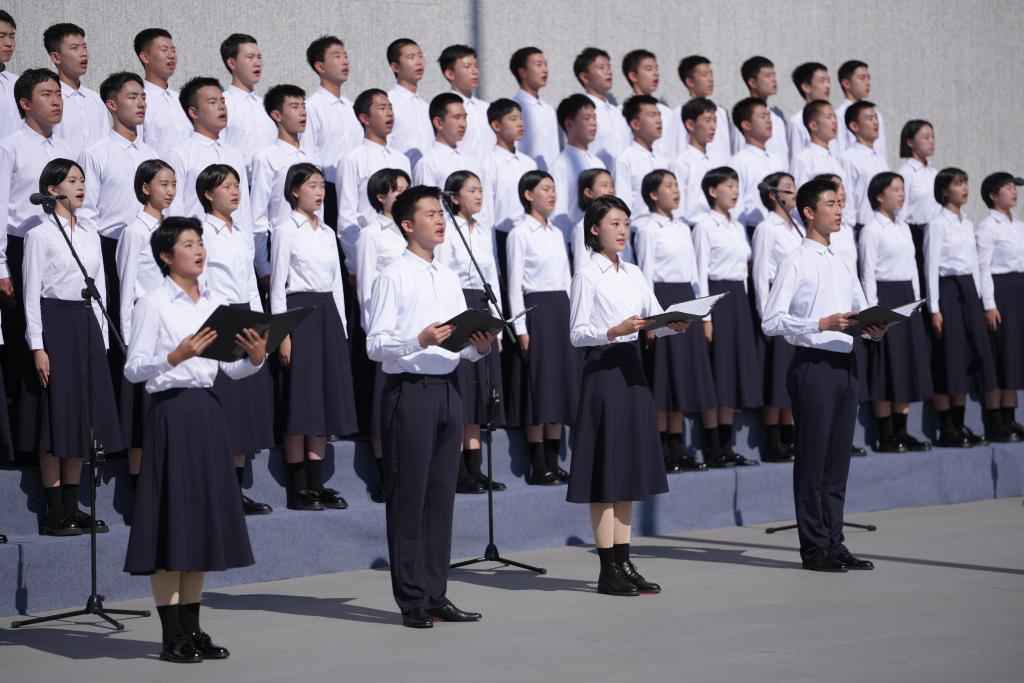 A 9H18, 14 représentants de divers secteurs ont sonné une énorme cloche à 14 reprises, symbolisant les 14 ans de lutte acharnée contre les envahisseurs japonais.