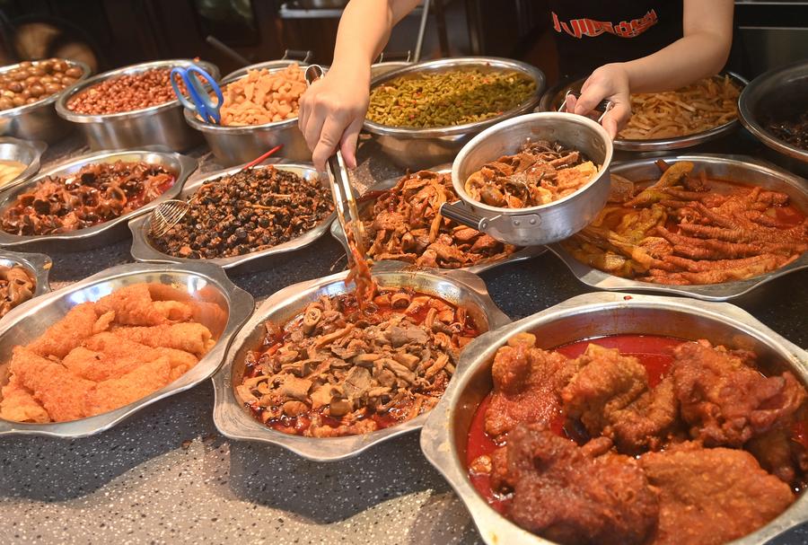 Une employée ajoute des garnitures dans un bol de luosifen dans un restaurant de Nanning, dans la région autonome Zhuang du Guangxi (sud de la Chine), le 18 septembre 2025. (Photo : Lu Boan)