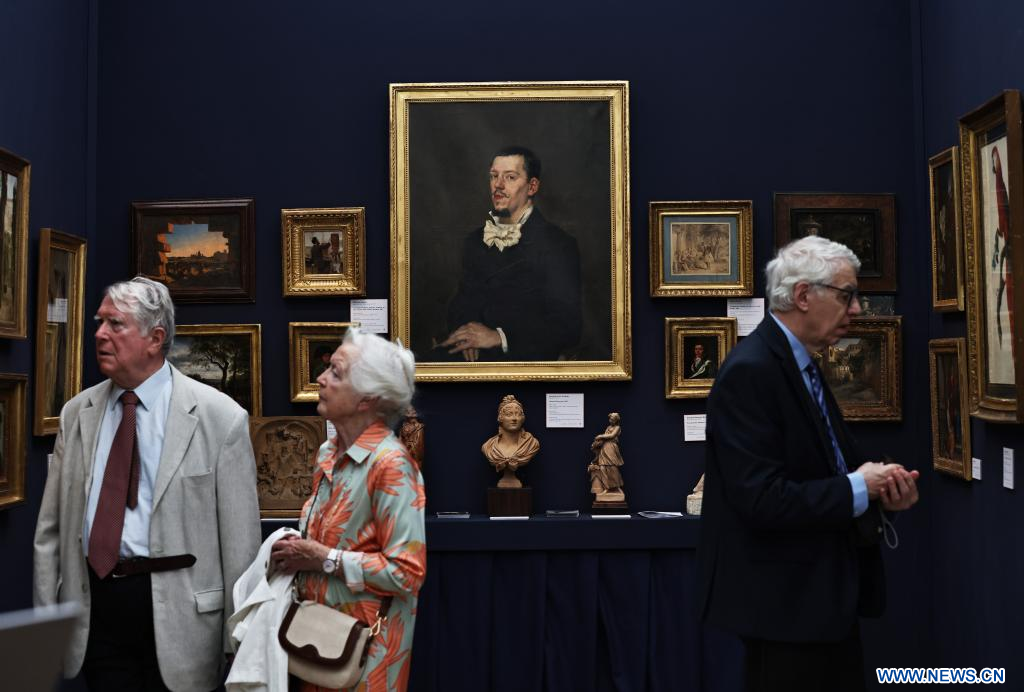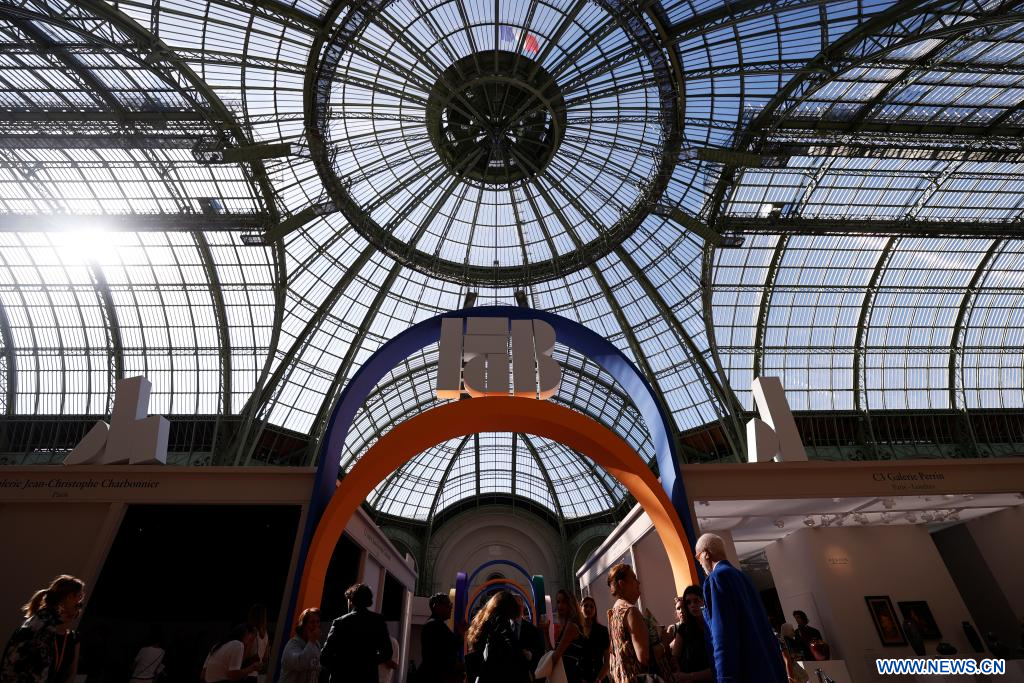 PARIS, 20 septembre (Xinhua) -- Des visiteurs découvrent le salon FAB Paris lors d'une visite de presse au Grand Palais, à Paris, en France, le 19 septembre 2025. Ce salon d'art classique et d'antiquités ouvre ses portes au public du 20 au 24 septembre, rassemblant une centaine d'exposants de renommée internationale. (Xinhua/Gao Jing)