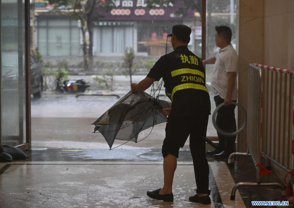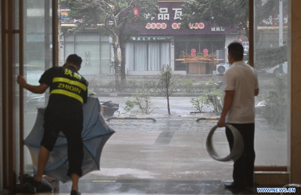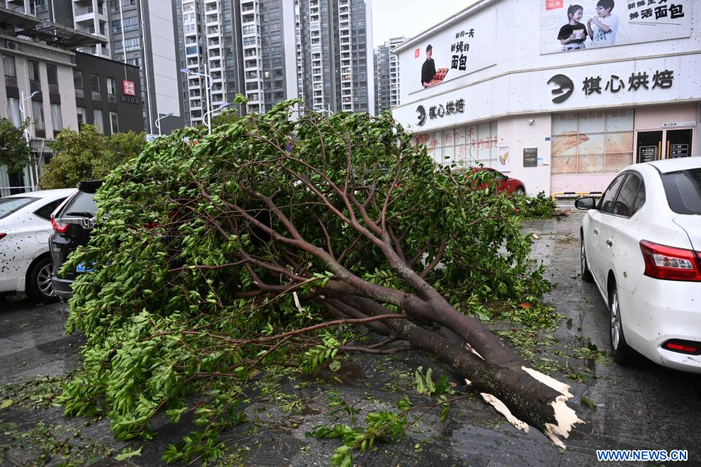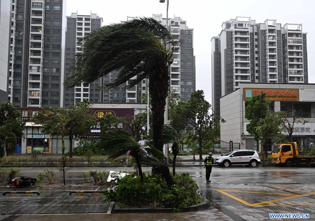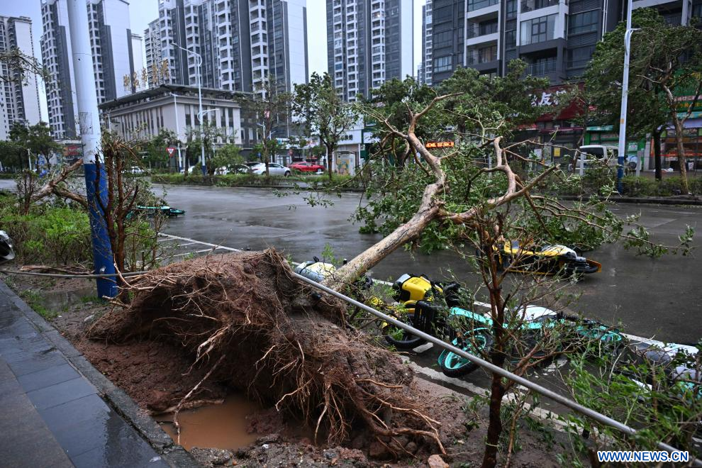 Le typhon, dont la vitesse maximale des vents près de son centre atteignait 40 mètres par seconde, a touché terre sur l'île de Hailing, dans la ville de Yangjiang, dans le Guangdong.
