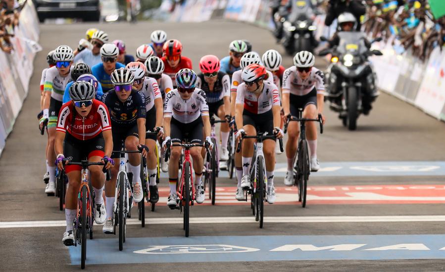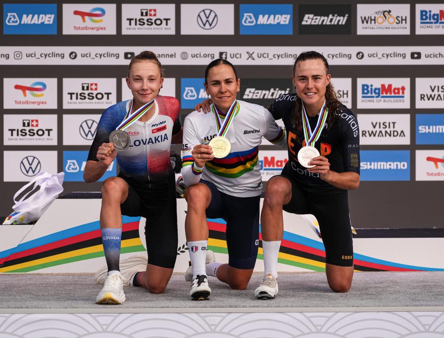 KIGALI, 26 septembre (Xinhua) -- Les coureuses s'affrontent lors de l'épreuve du contre-la-montre individuel féminin des moins de 23 ans (U23) aux Championnats du monde de cyclisme sur route UCI 2025 à Kigali, au Rwanda, le 25 septembre 2025. (Xinhua/Huang Wanqing)KIGALI, 26 septembre (Xinhua) -- La Française Célia Gery (au centre), médaillée d'or, la Slovaque Viktoria Chladonova (à gauche), médaillée d'argent, et l'Espagnole Paula Blasi Cairol, médaillée de bronze, posent lors de la cérémonie de remise des médailles du contre-la-montre individuel féminin des moins de 23 ans (U23) aux Championnats du monde de cyclisme sur route UCI 2025 à Kigali, au Rwanda, le 25 septembre 2025. (Xinhua/Li Yahui)■