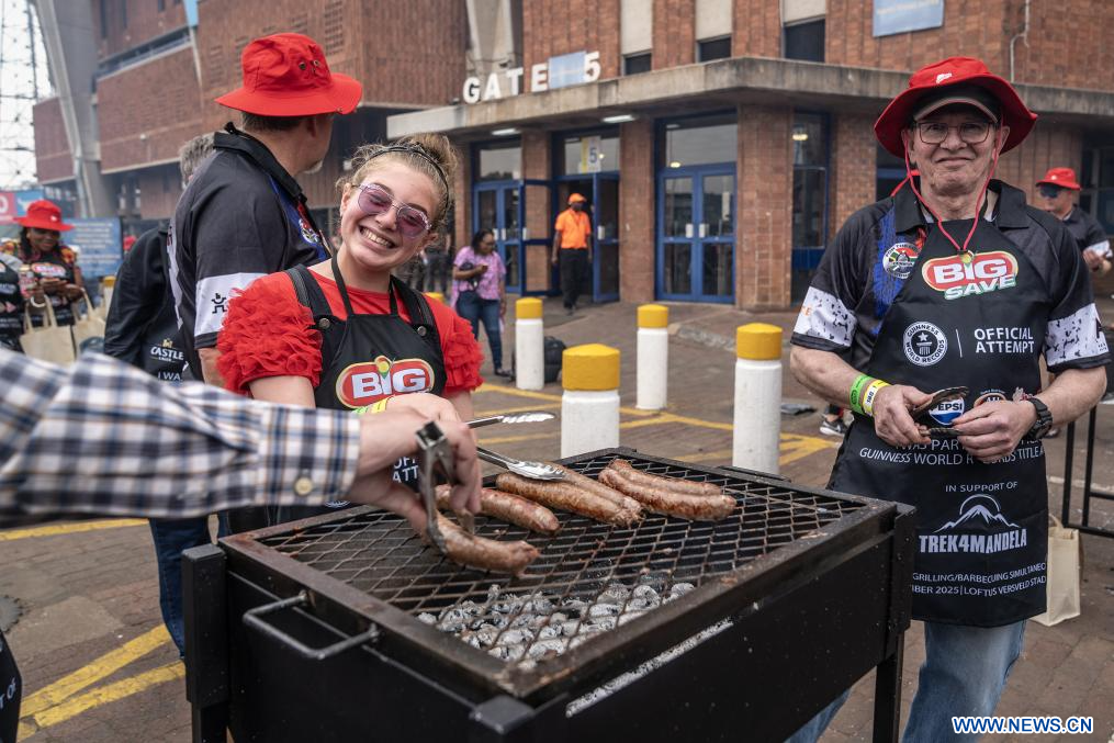 JOHANNESBURG, 25 septembre (Xinhua) -- Photo prise le 24 septembre montrant un festival de barbecue organisé au stade Loftus Versfeld de Pretoria, en Afrique du Sud.