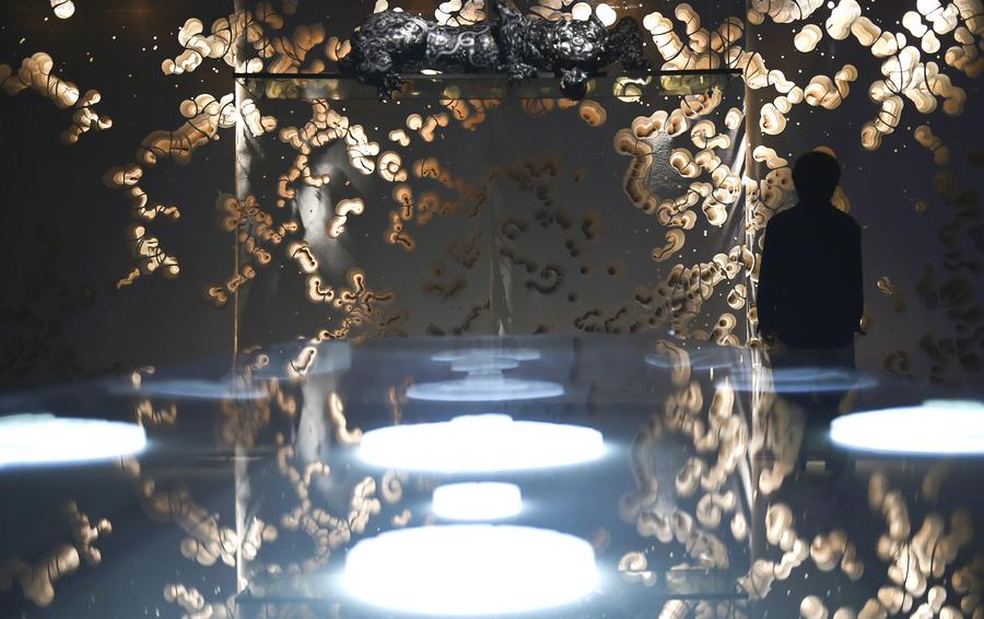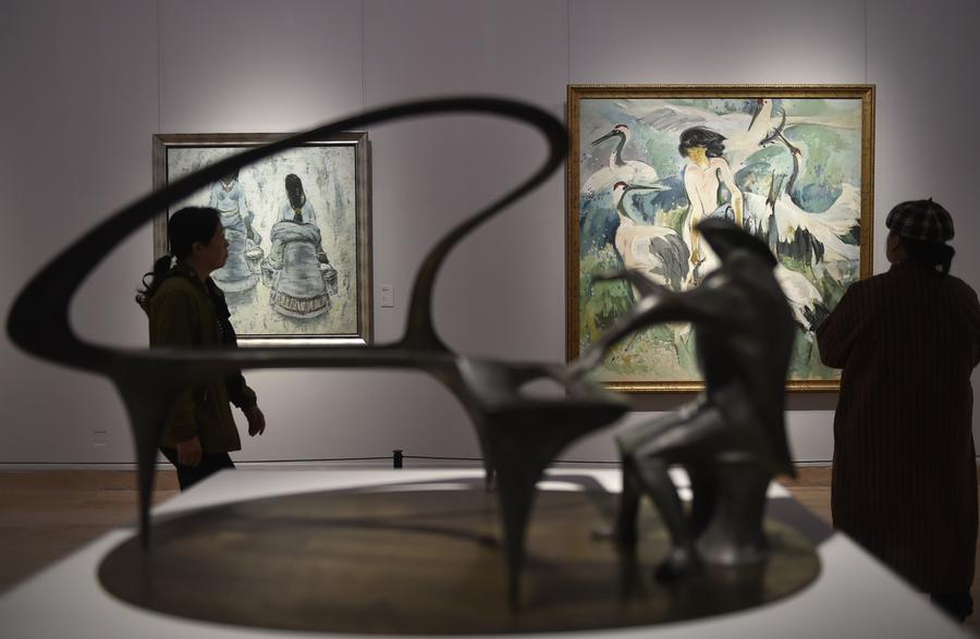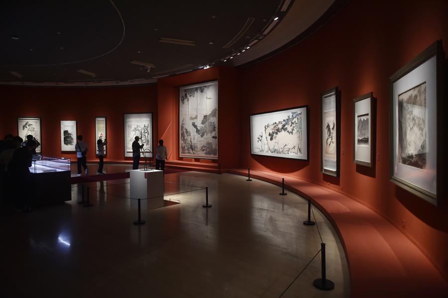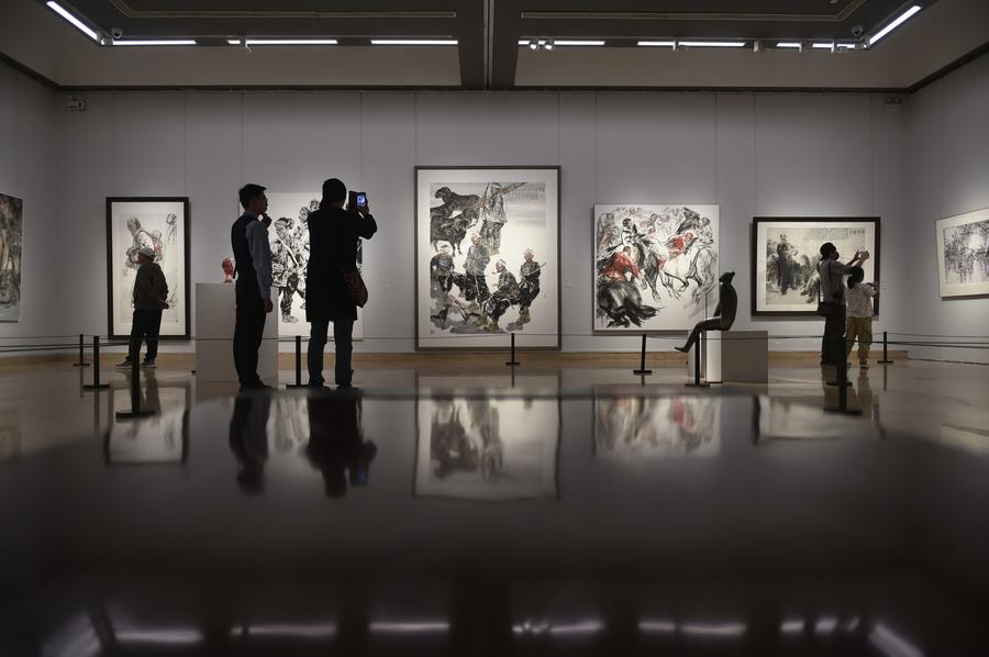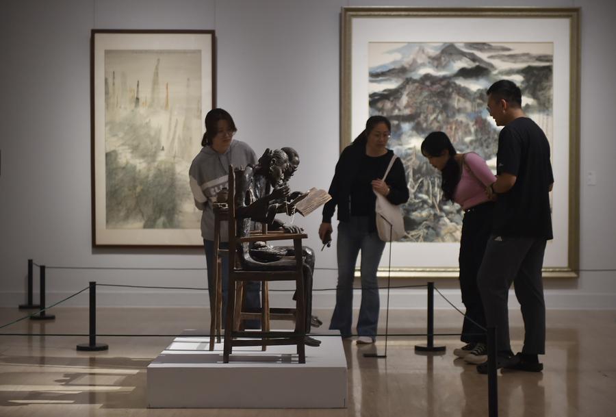 Des visiteurs admirent l'exposition nationale d'art Xieyi "Honorer l'esprit : hommage aux classiques" au Musée national des beaux-arts de Chine à Beijing, capitale de la Chine, le 27 septembre 2025. L'exposition a ouvert ses portes samedi et présente près de 600 œuvres d'art. (Photo : Lu Peng)
